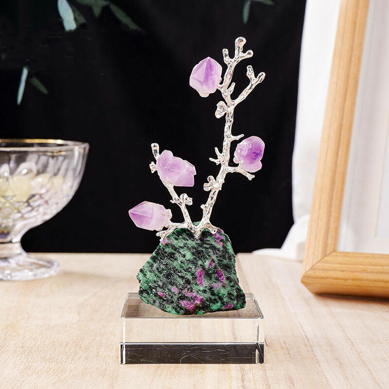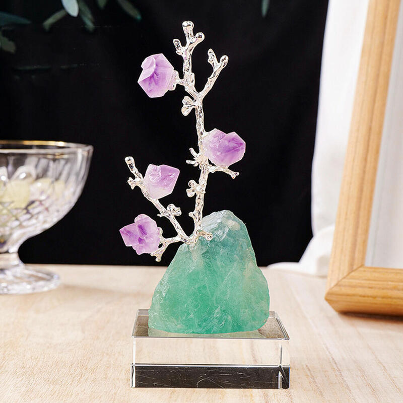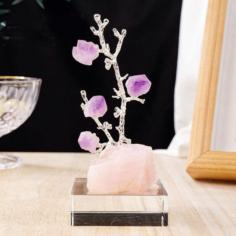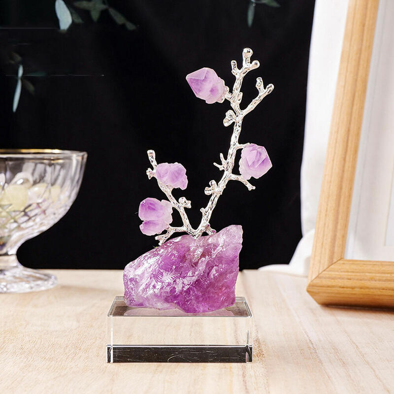 Crystal Raw Stone Fortune Tree Amethyst Tooth Flower Tree Raw Ore Chassis Decoration for Friends