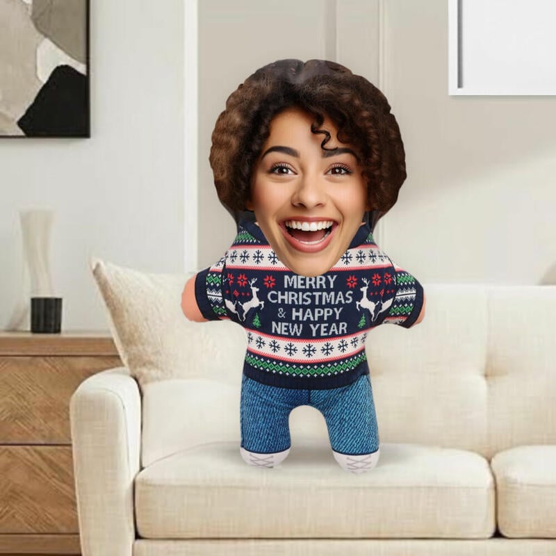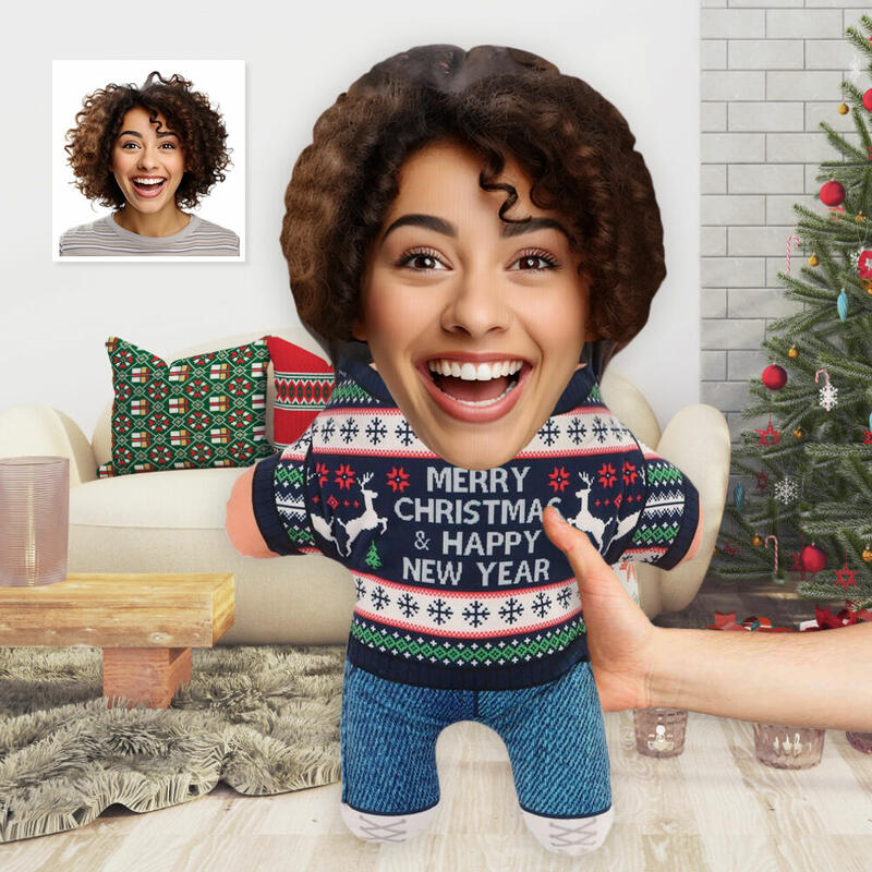 Custom Face Pillow Merry Christmas and Happy New Year Gift