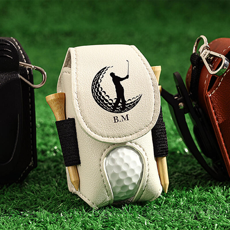 Custom Golf Ball Bag with Golfer Pattern Leather Travel Mini Bag Couple Gift for Boyfriend