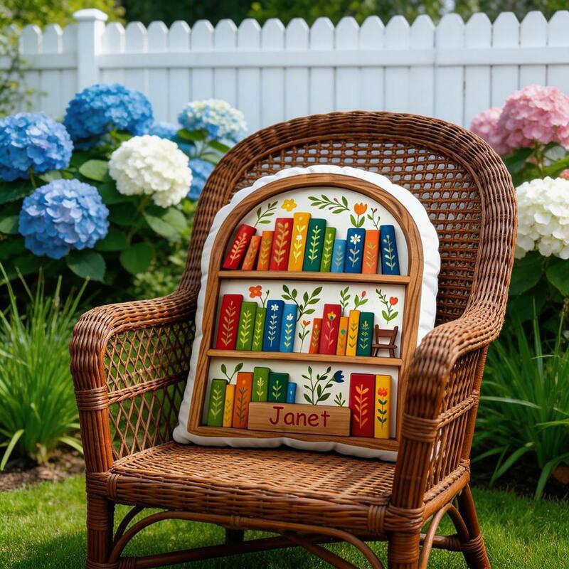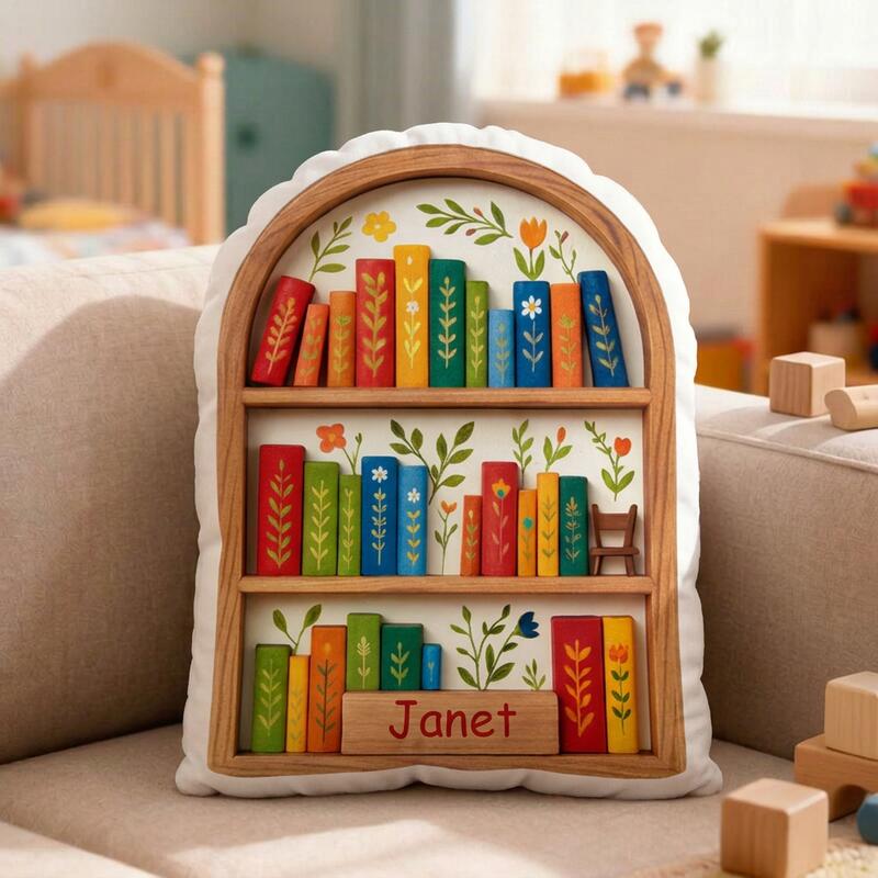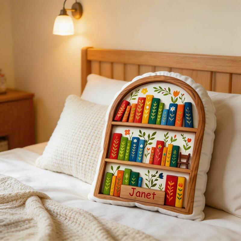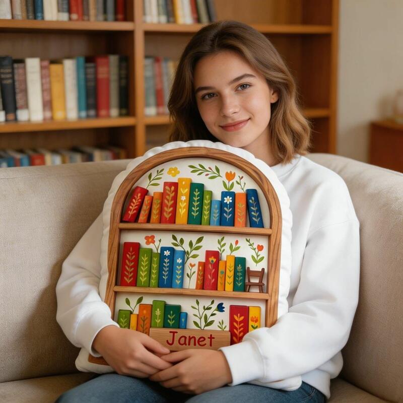Custom Name Bookshelf Throw Pillow Cute Floral Bookshelf Decor Pillow Unique for Mother's Day