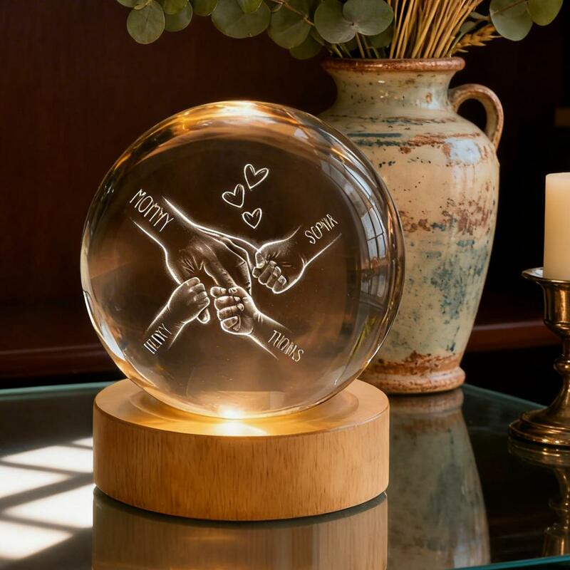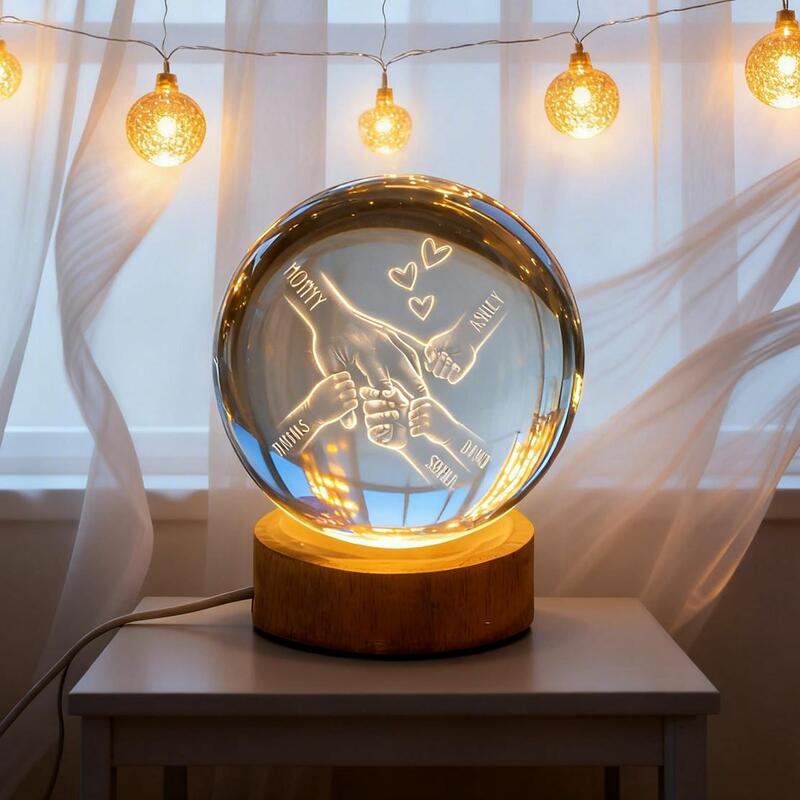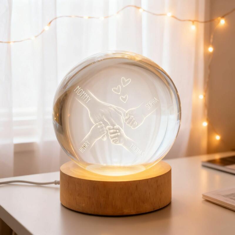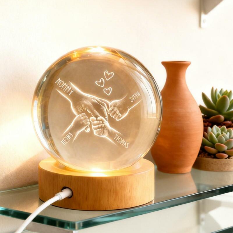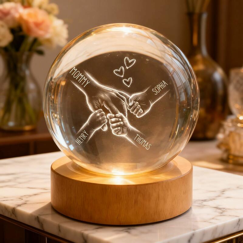 "Holding Hands" Themed Personalized Crystal Ball Lamp a Loving Gift for Mom