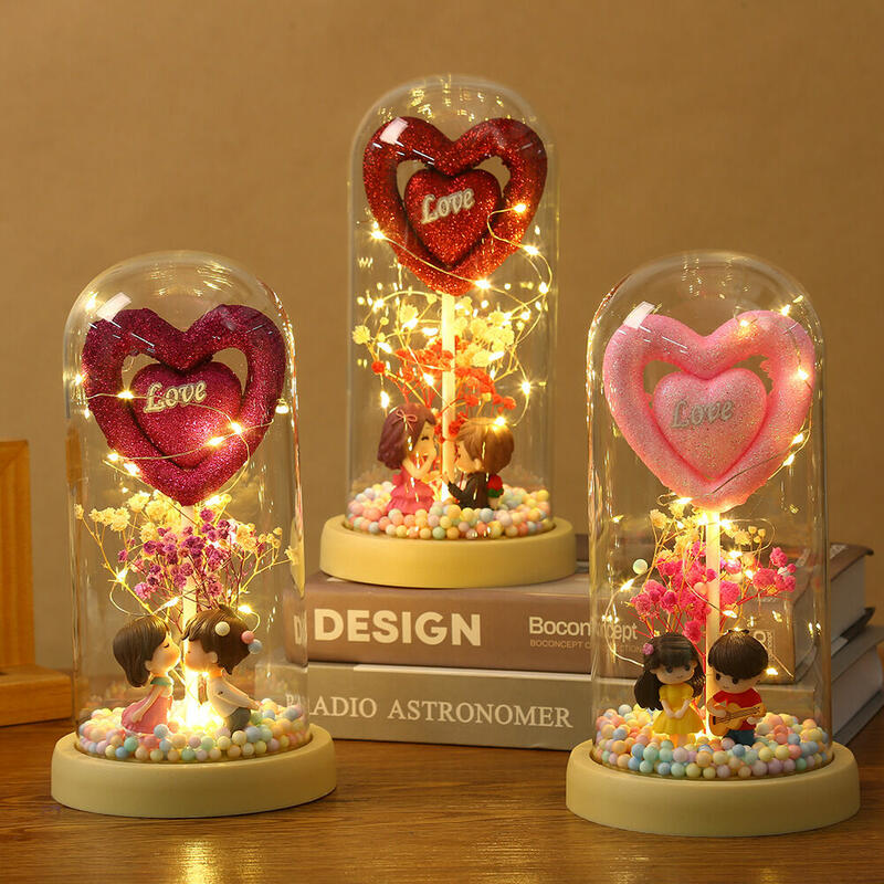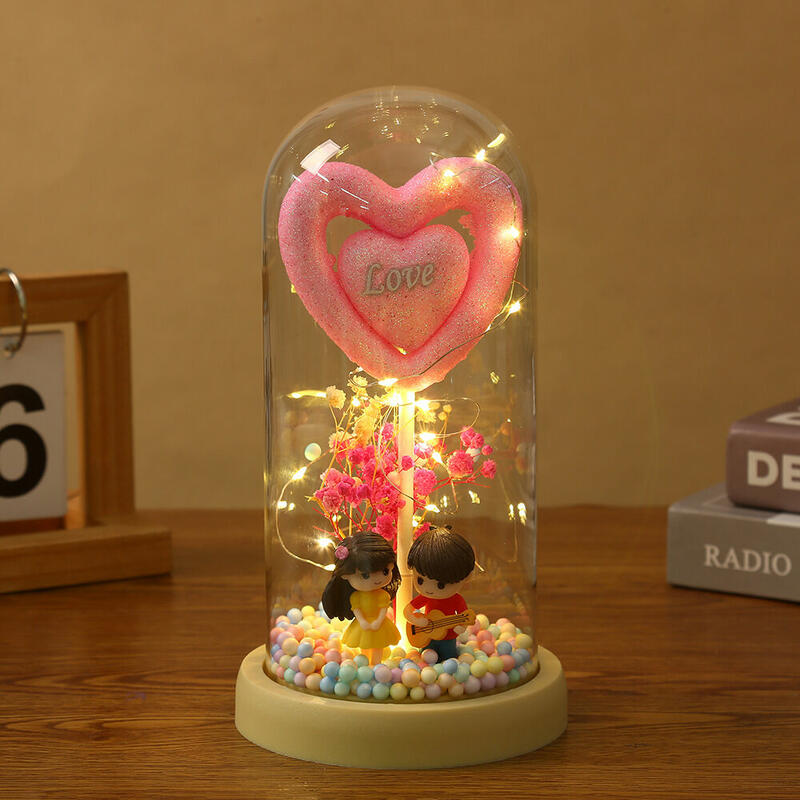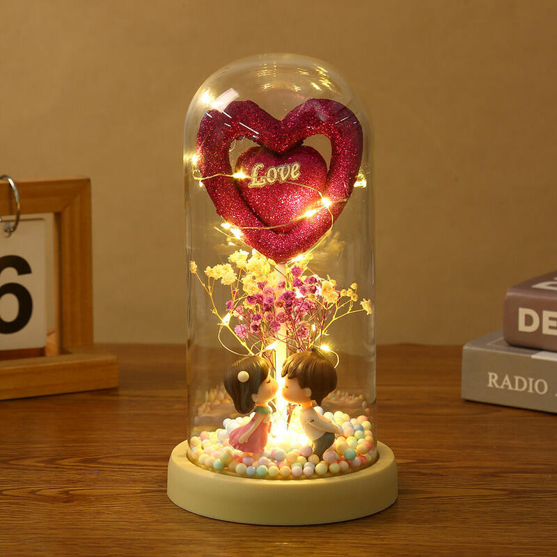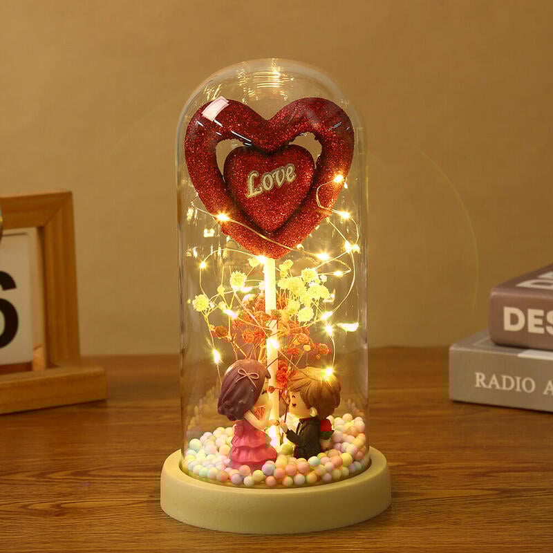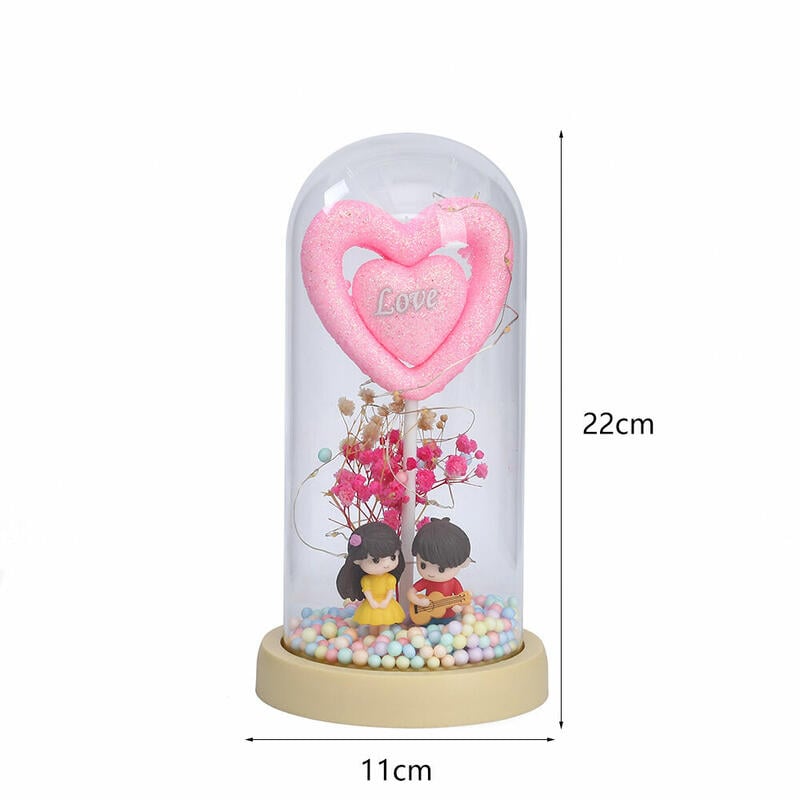 Love Glass Cover Ornament With Couple's Doll Cute Valentine's Day Gift