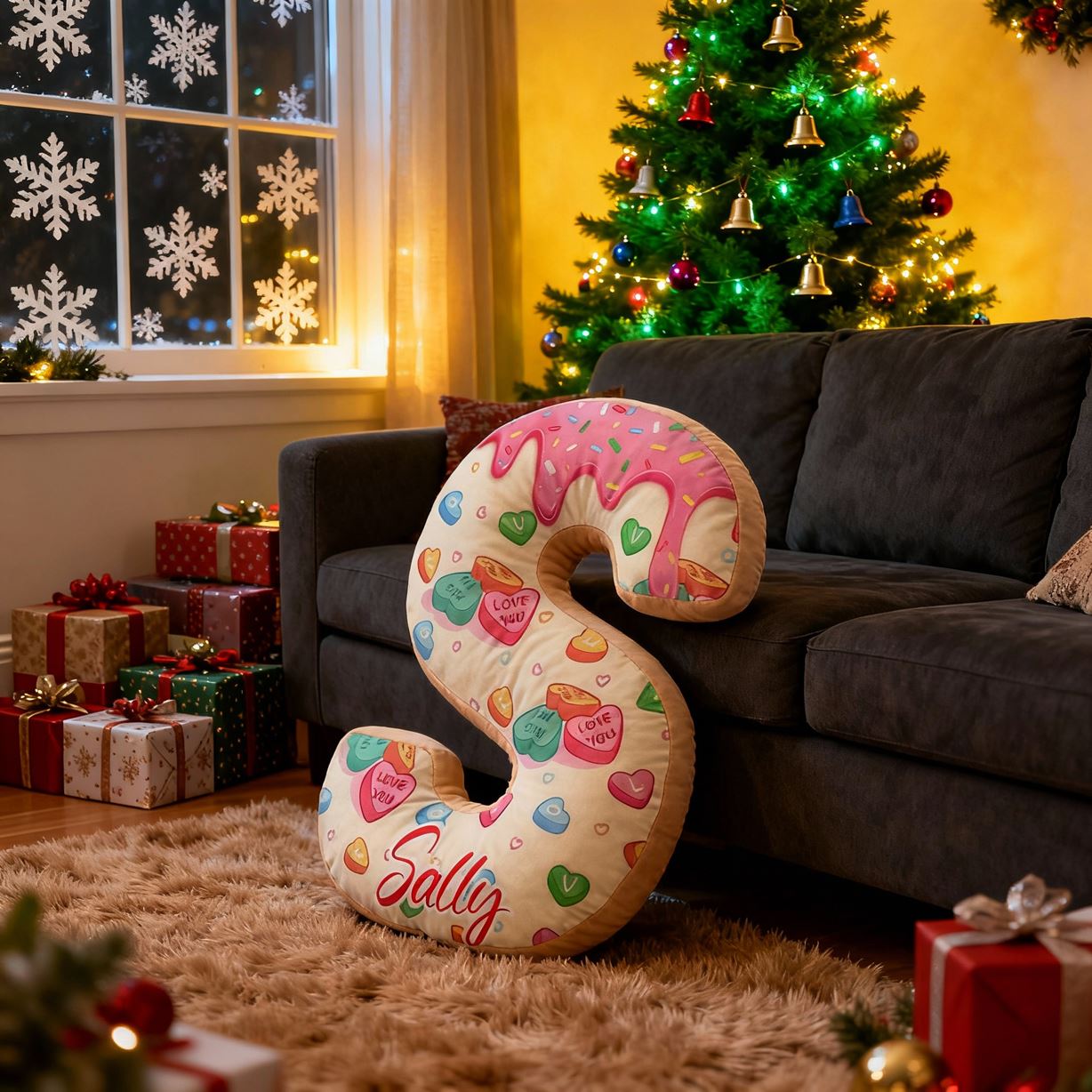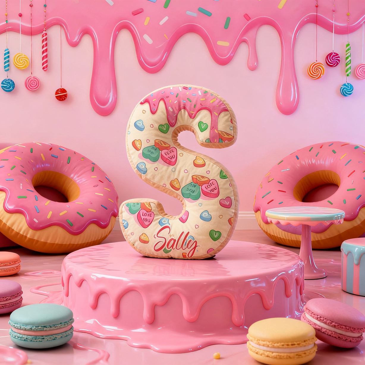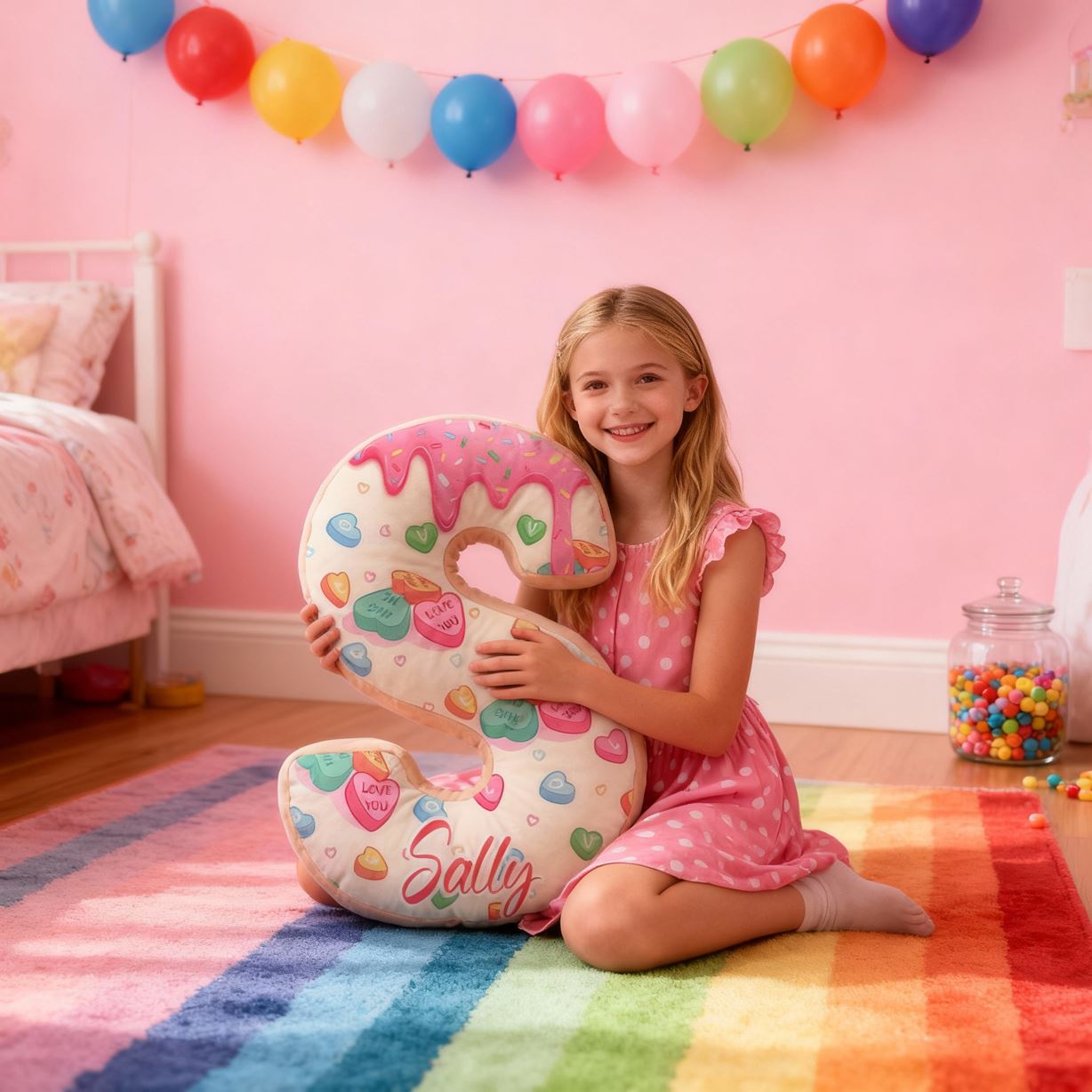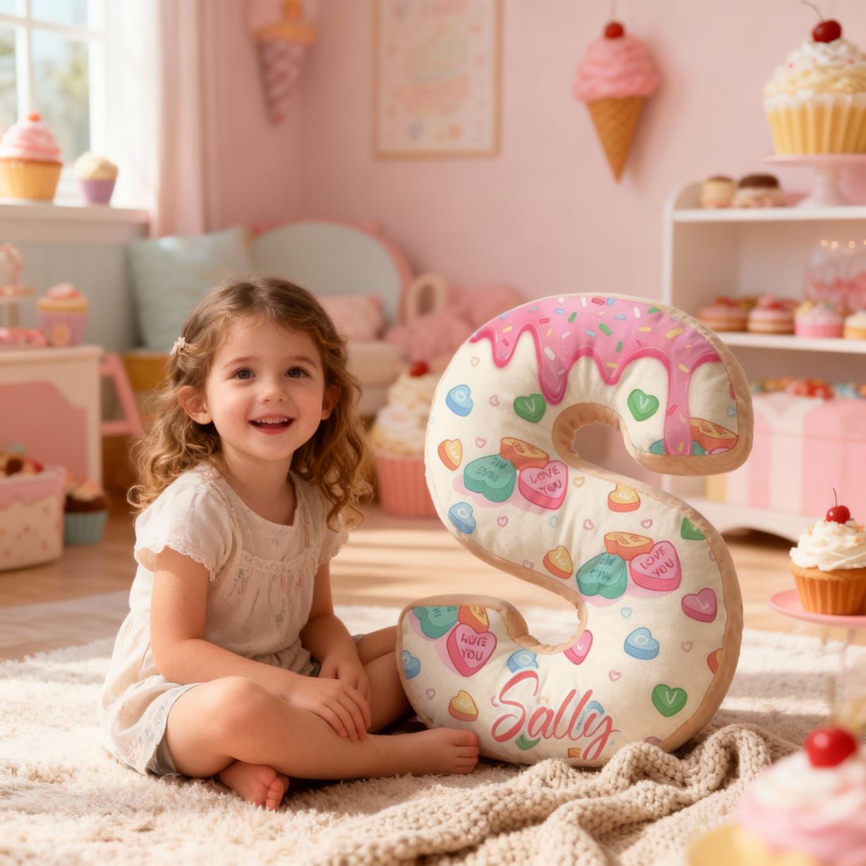Personalized 3D Letter Pillows with Candy and Donut Patterns Fun Decorative Gifts for Kids