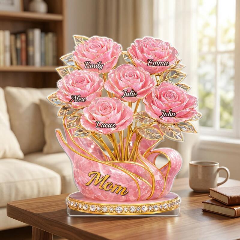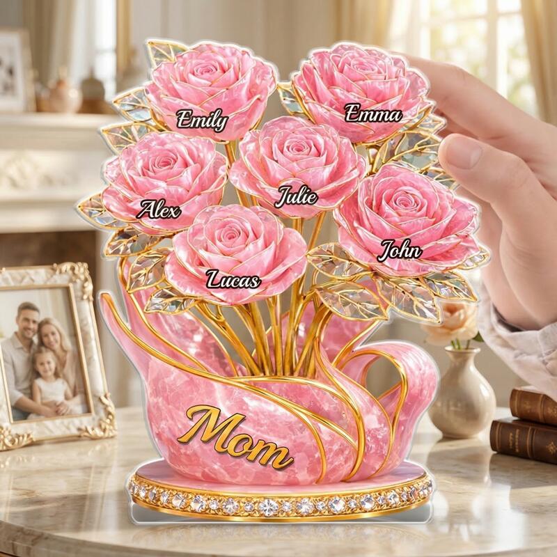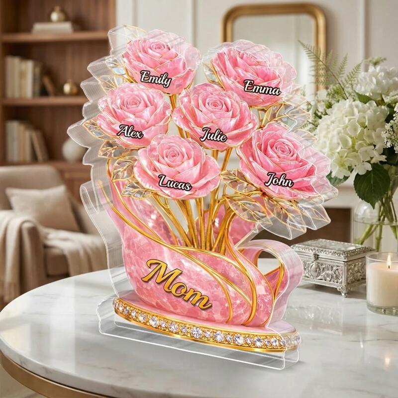Personalized Acrylic Block Plaque Custom Kid Name Pink Flowers Design Elegant Gift for Mother's Day
