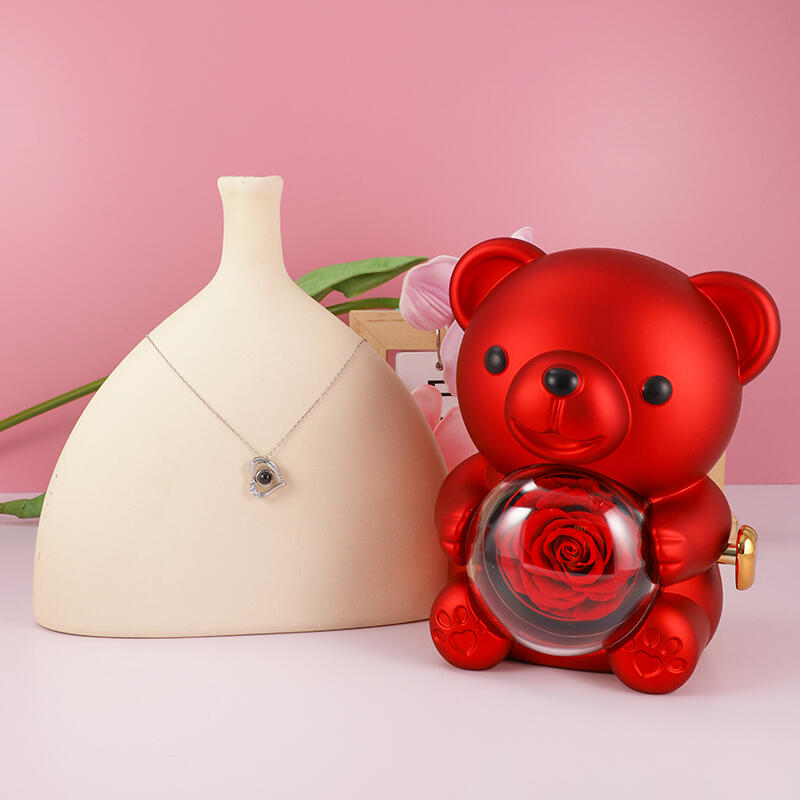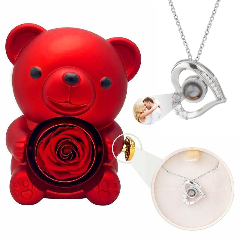 Personalized Bear Jewelry Box With Exquisite Love Projection Necklace Valentine's Day Gift