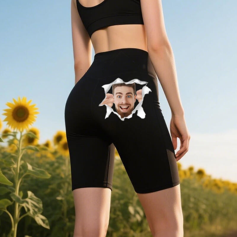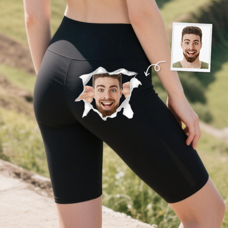 Personalized Biker Leggings Custom Head Photo Fun Crack Pattern Design Creative Gift for Her Lovers
