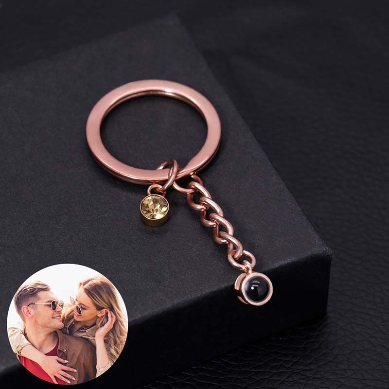 Personalized Birthstone Photo Projection Keychain