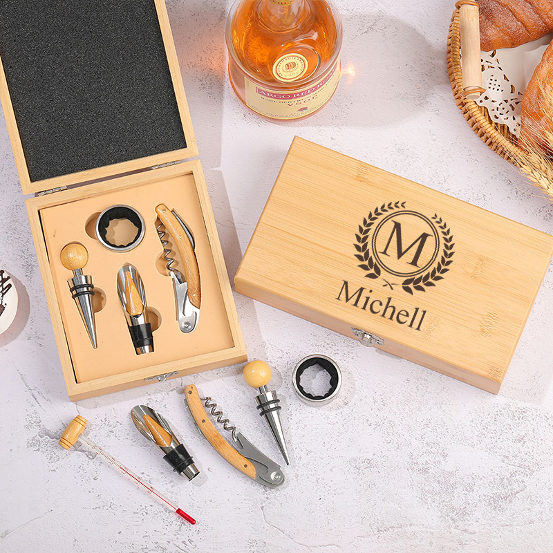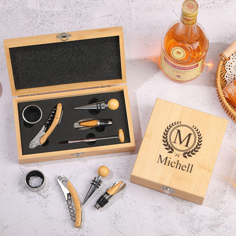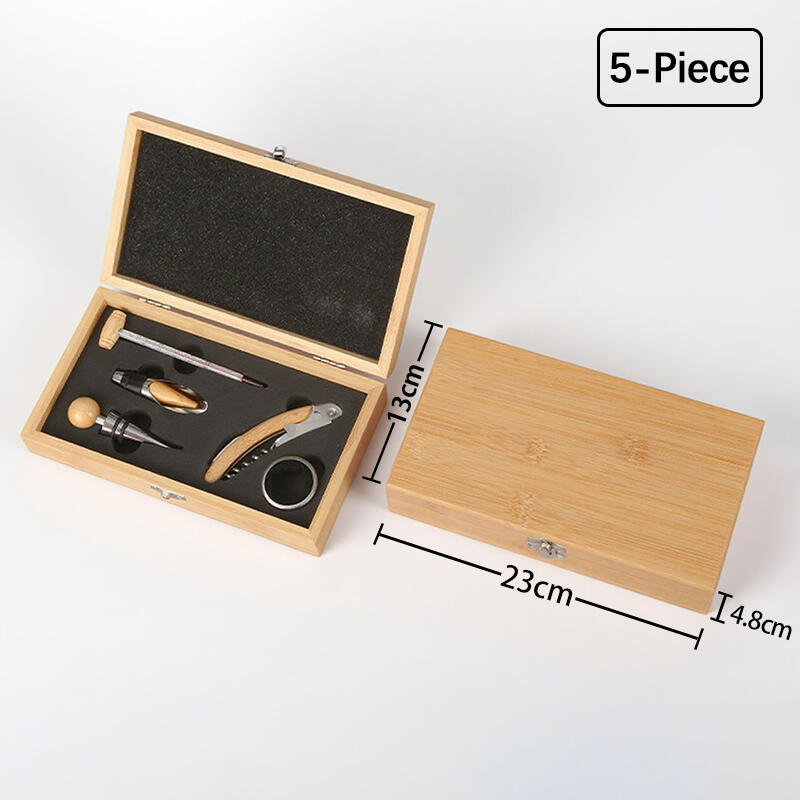 This Bamboo Box Bottle Opener Set is a perfect companion for wine enthusiasts. The various tool accessories are crafted from durable alloy, ensuring superior performance and long-lasting durability. Encased in an exquisite bamboo gift box, it not only serves as a practical tool set but also makes for an elegant present.