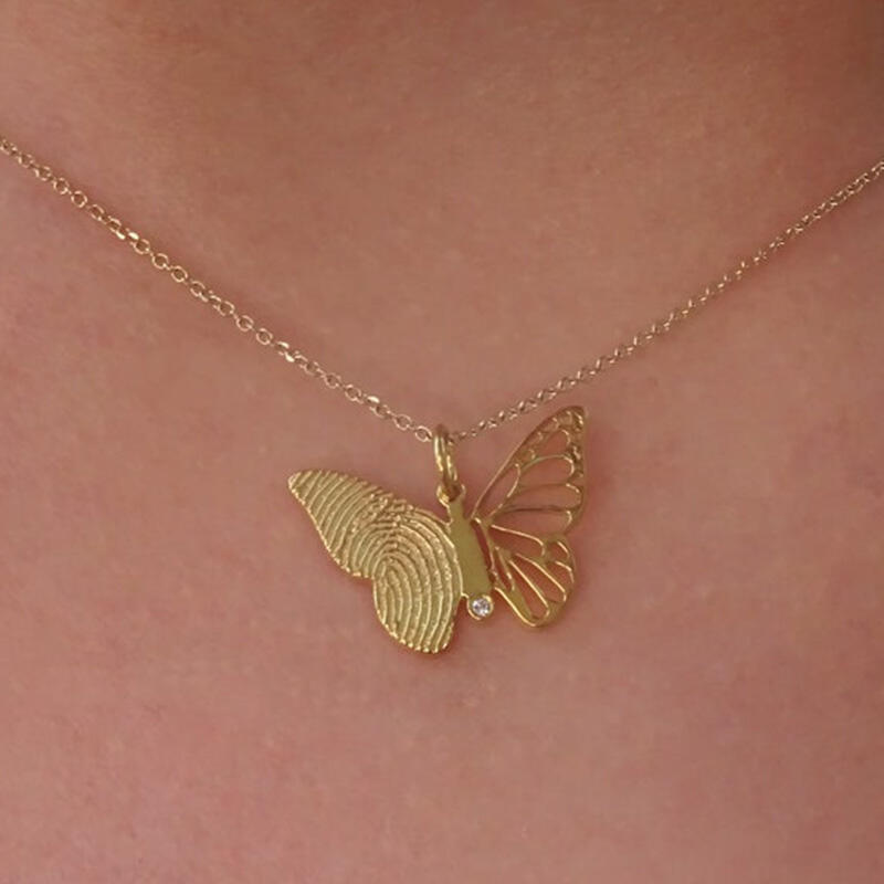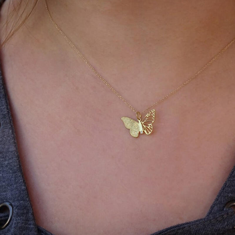 Personalized Butterfly Fingerprint Necklace Memorial Gift For Loved Ones