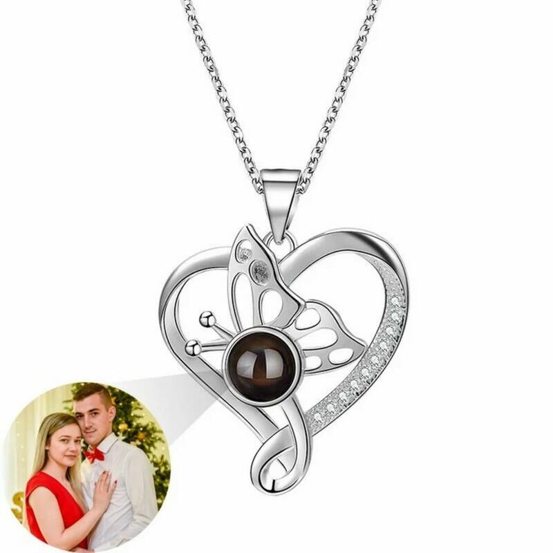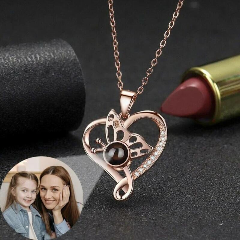 Personalized Butterfly Photo Projection Necklace With Diamond Ornament for Daughter