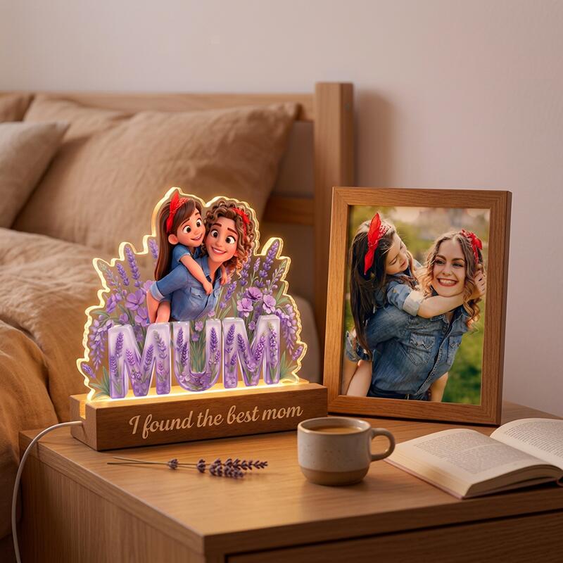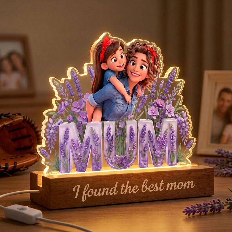 Imagine giving this on Mother’s Day. The lamp glows softly, revealing “MUM” surrounded by lavender flowers, with the engraved sentiment I found the best mom. Smiles, tears, and gratitude follow. It’s not just a gift—it’s a moment she’ll treasure forever.