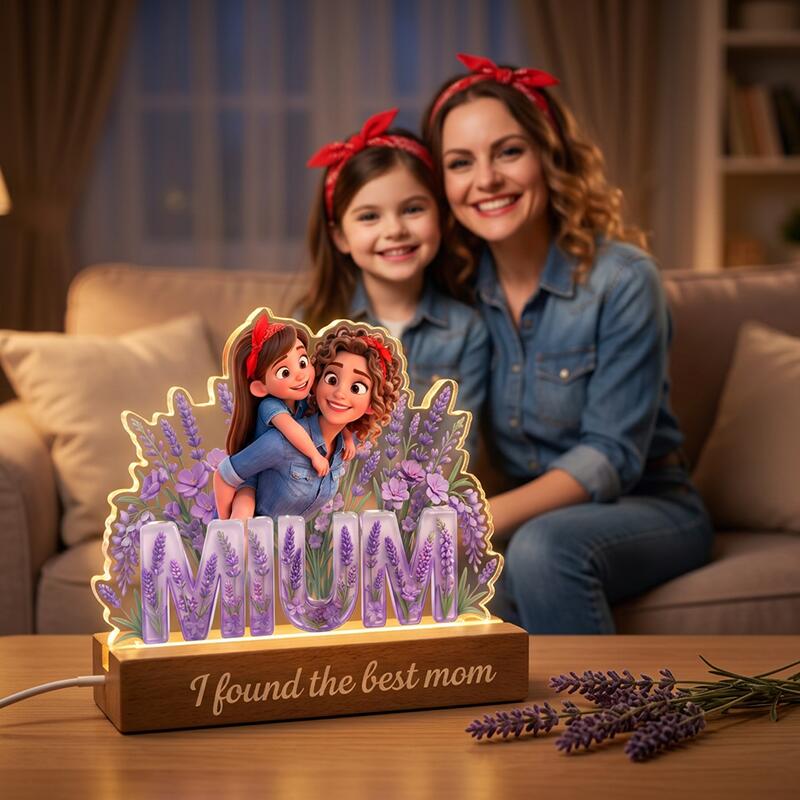 Personalized Cartoon Photo Night Light with Lavender Flower Design Beautiful Gift for Mom