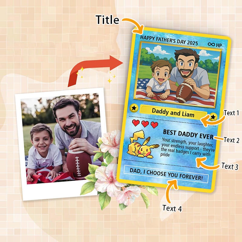 Designed with love and inspired by the world of collectible trading cards, this custom card is the perfect way to show the person just how much of a hero they are in your life. Every card is unique, featuring a photo, name, and warm words. It’s not just a card—it’s a keepsake he’ll treasure forever.