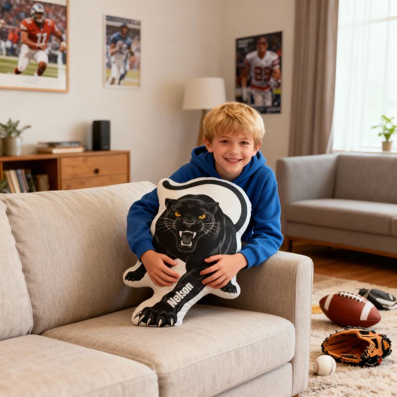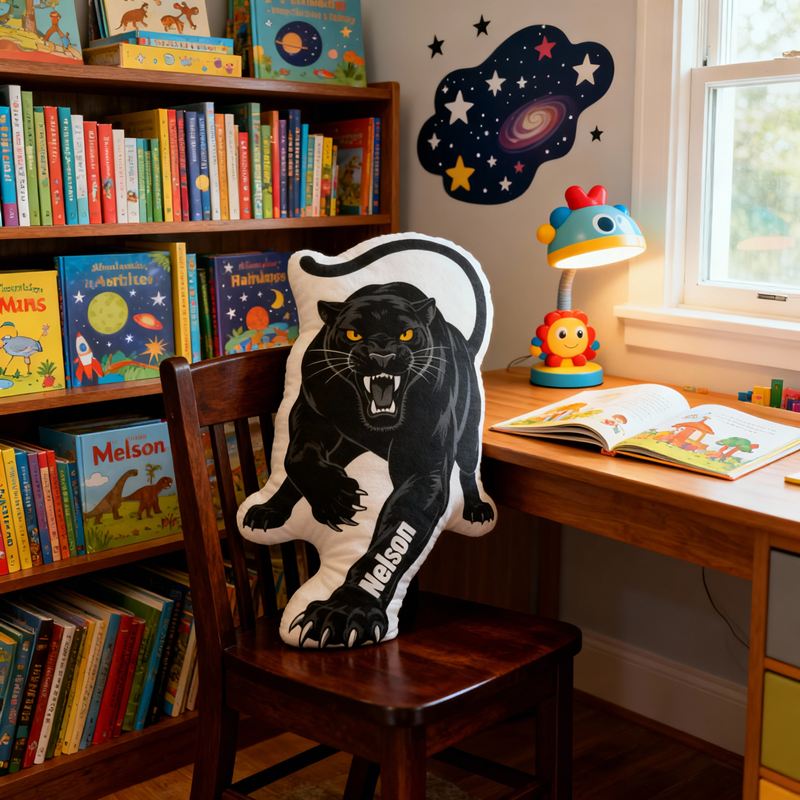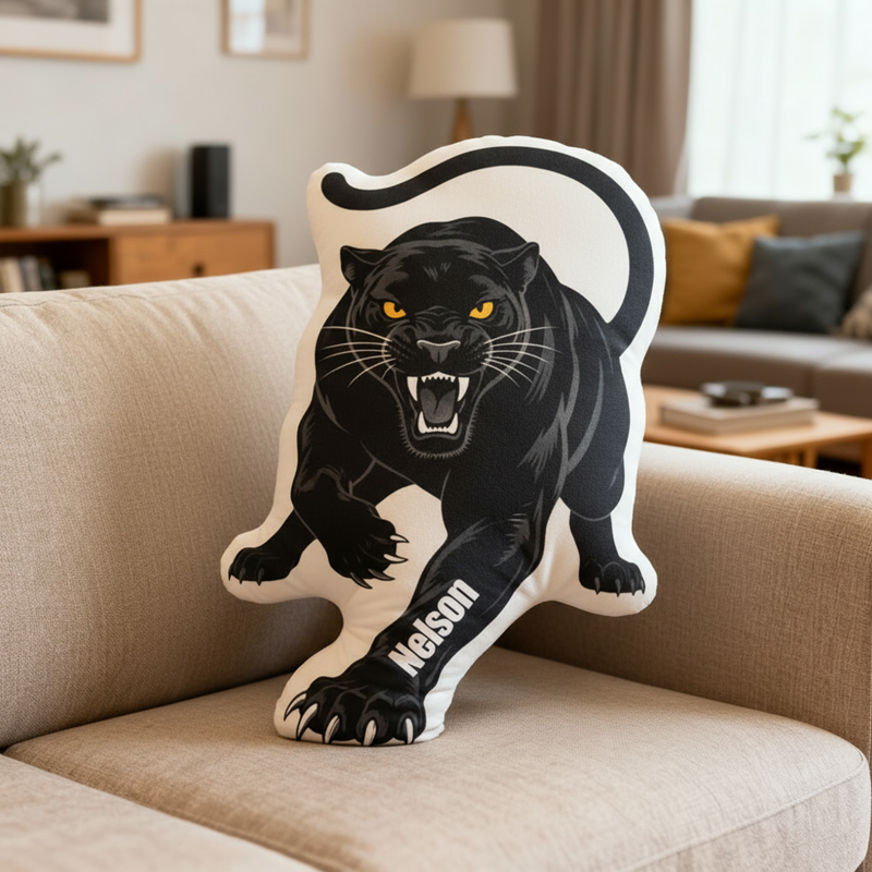 Personalized Cartoon-Shaped Pillow The Fierce Attacking Black Panther Cool Gift for Boys
