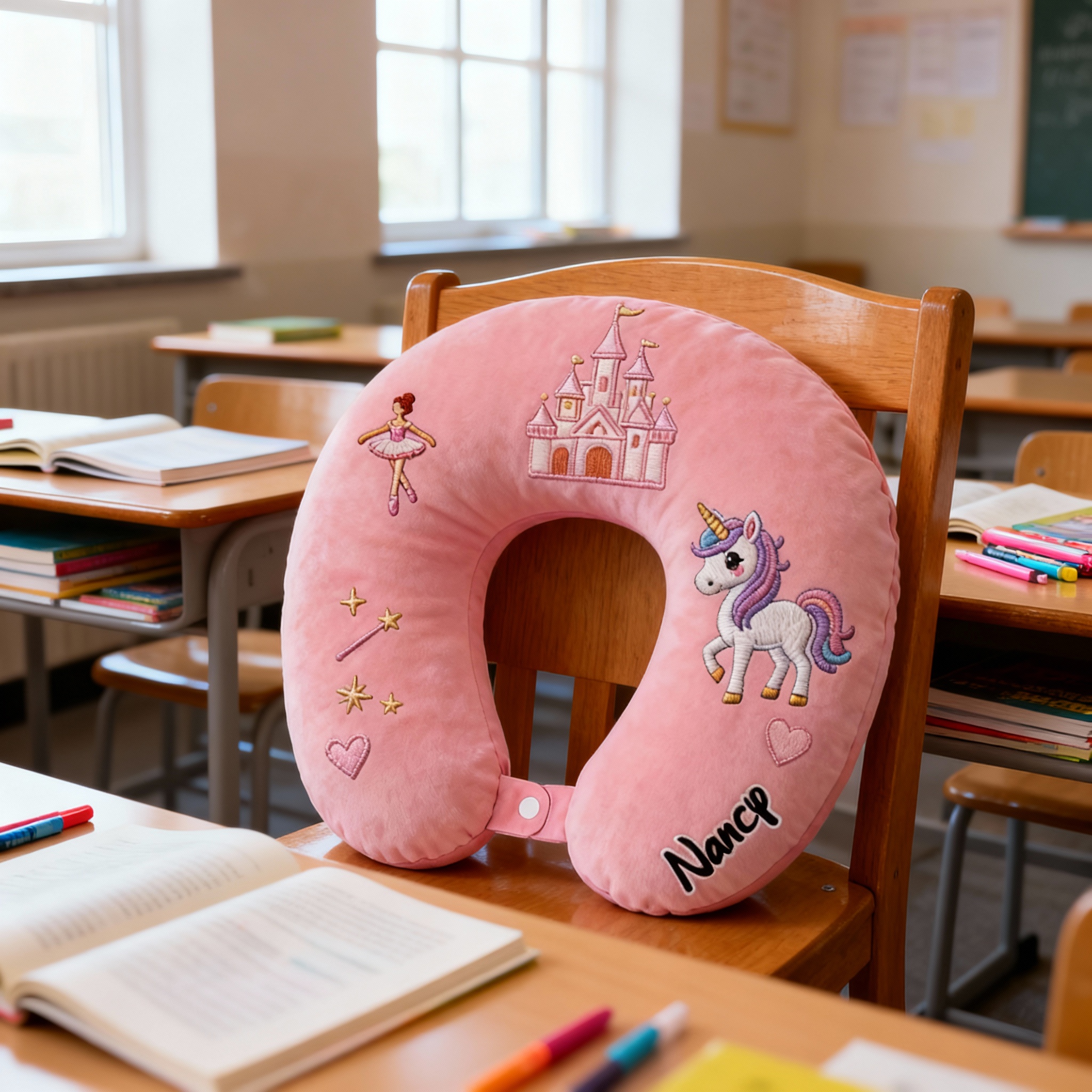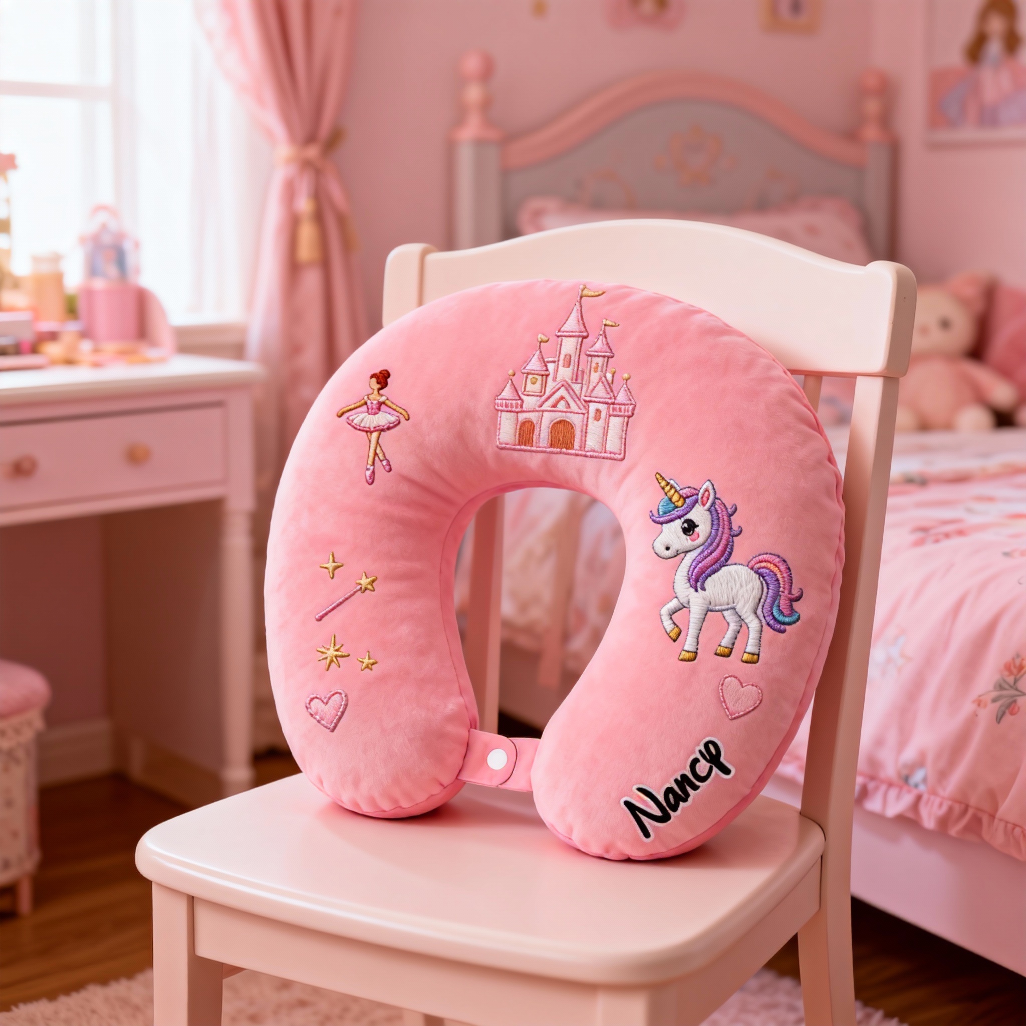 Personalized Castle Unicorn Pattern U-Shaped Pillow Cute Travel Gift for Children