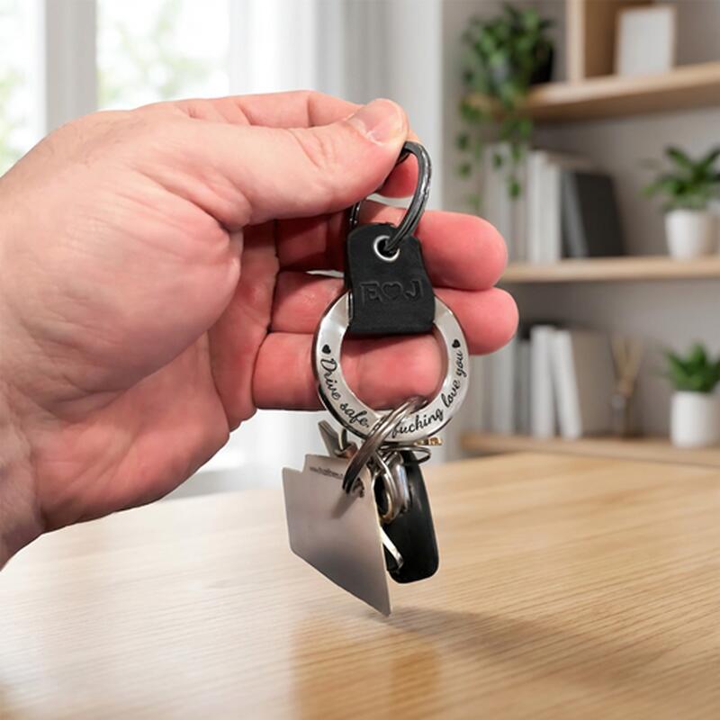 Its standout feature is full customization. Personalize it with names, anniversary dates, meaningful landmarks (like your first meeting spot) or short love quotes, turning a simple keychain into a one-of-a-kind memento. The metal surface enables crisp, clear engraving that maintains clarity over time, while the leather strap adds warmth and versatility, complementing any keys or bag style.