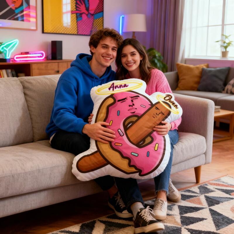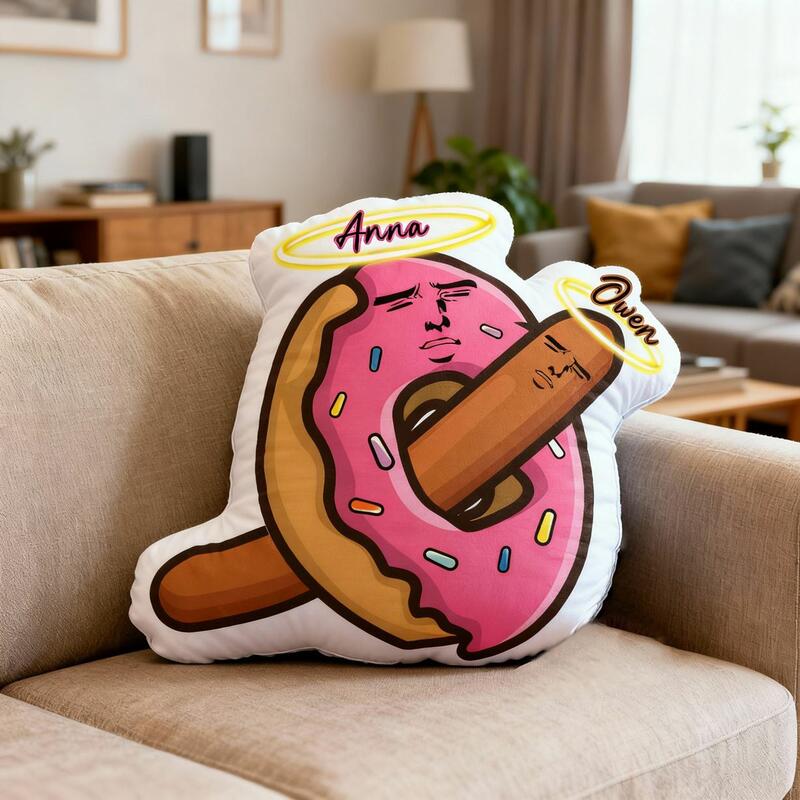 Personalized Donut-Shaped Plush Pillow Cartoon Print Cushion a Funny Prank Pillow for Couples