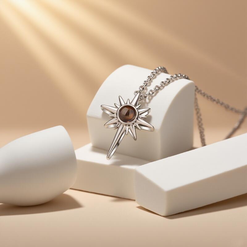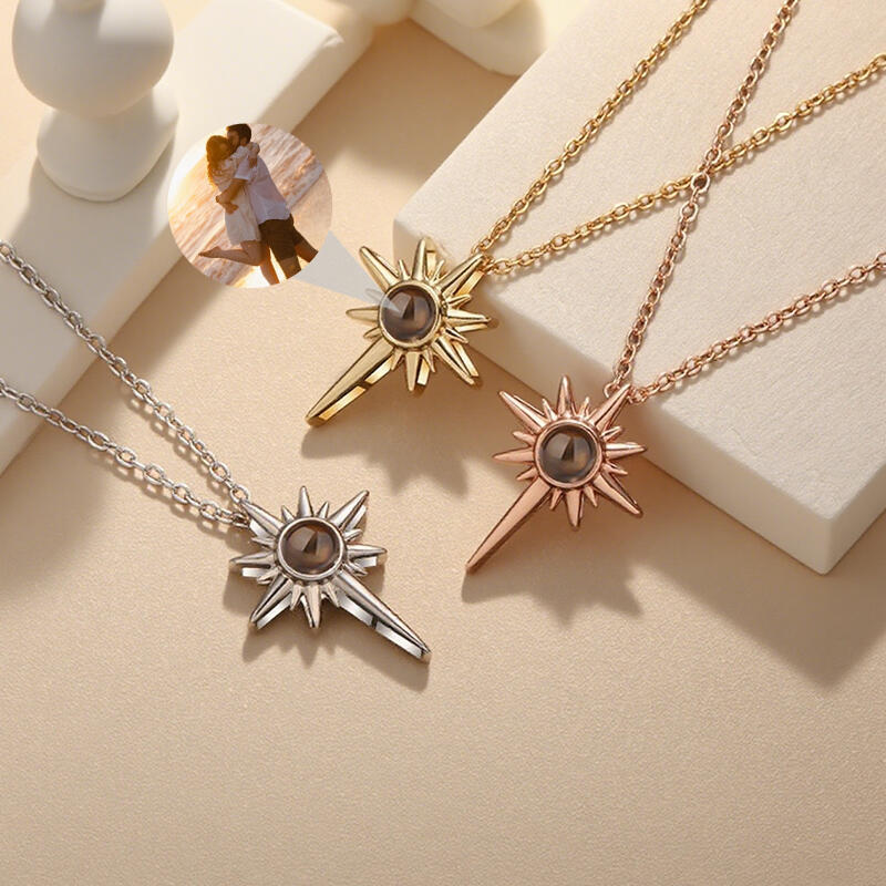 Personalized Eight-Pointed Star Projection Picture Necklace Anniversary Gift