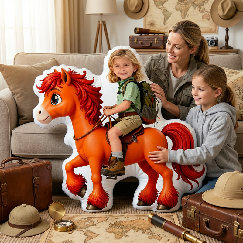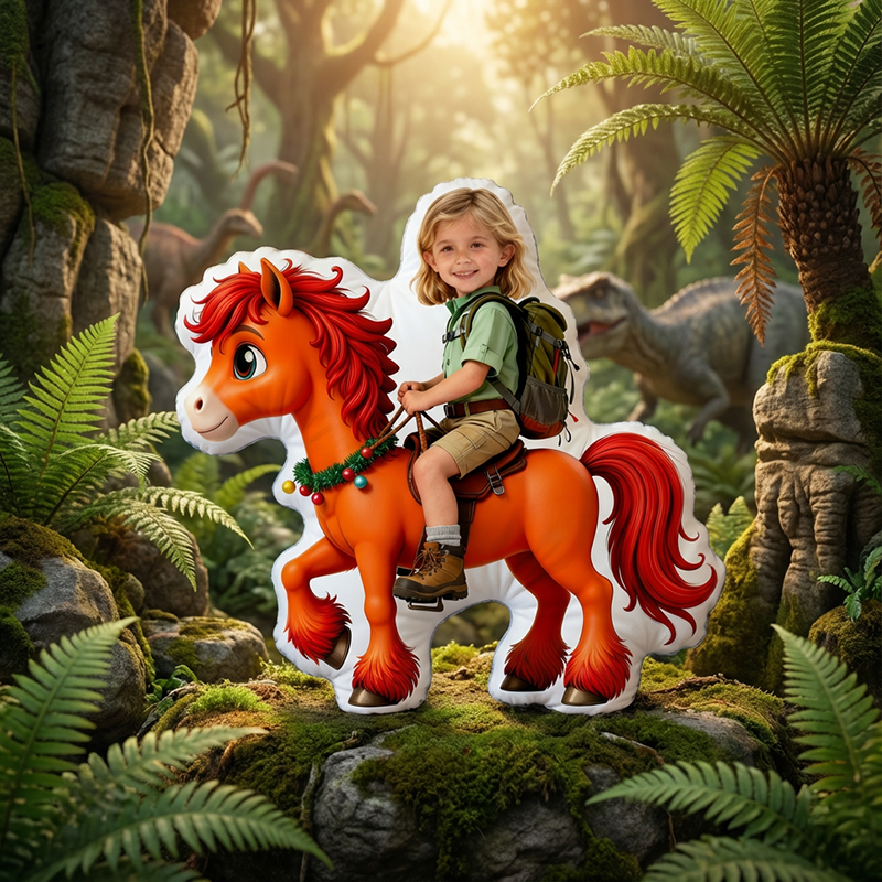 Personalized Face Portrait Pillow with Horse Pattern Interesting Gift for Girl