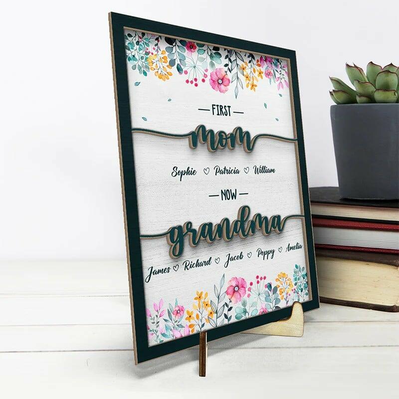 Personalized Frame First Mom Now Grandma with Custom Names Flower Design Perfect Gift for Mother's Day