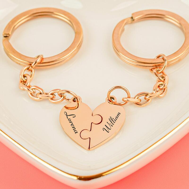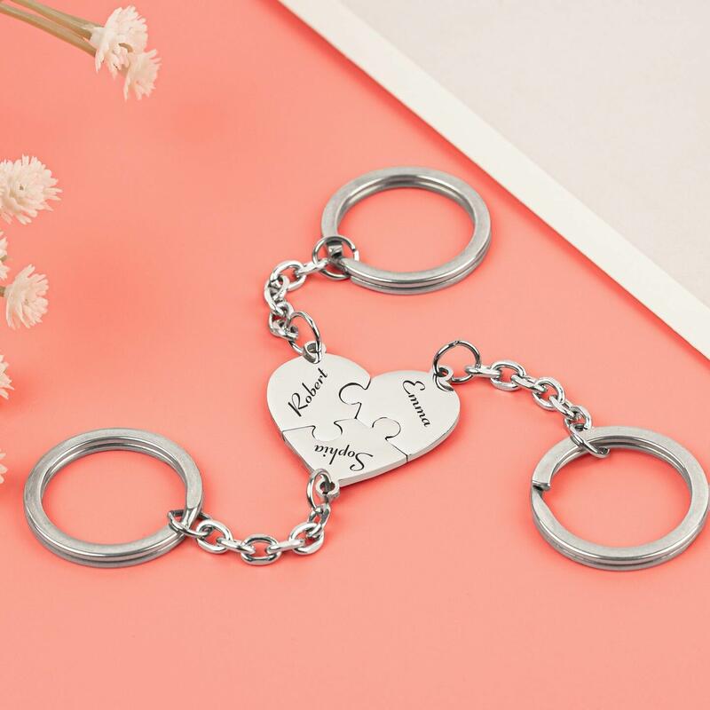 Personalized Heart Shaped Jigsaw Puzzle Keychain Special Gift for Family Members