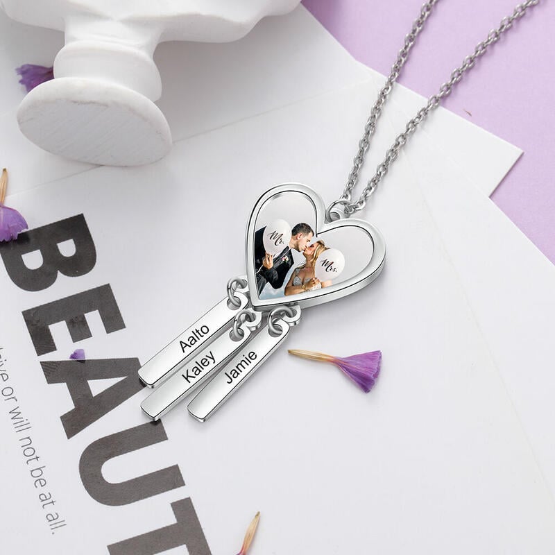Personalized Heart Shaped Photo Necklace With Name Group Christmas Gift For Family