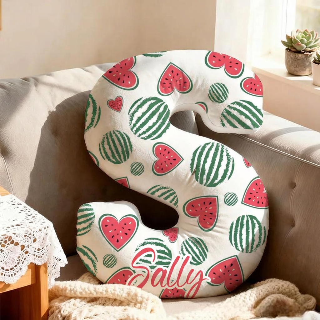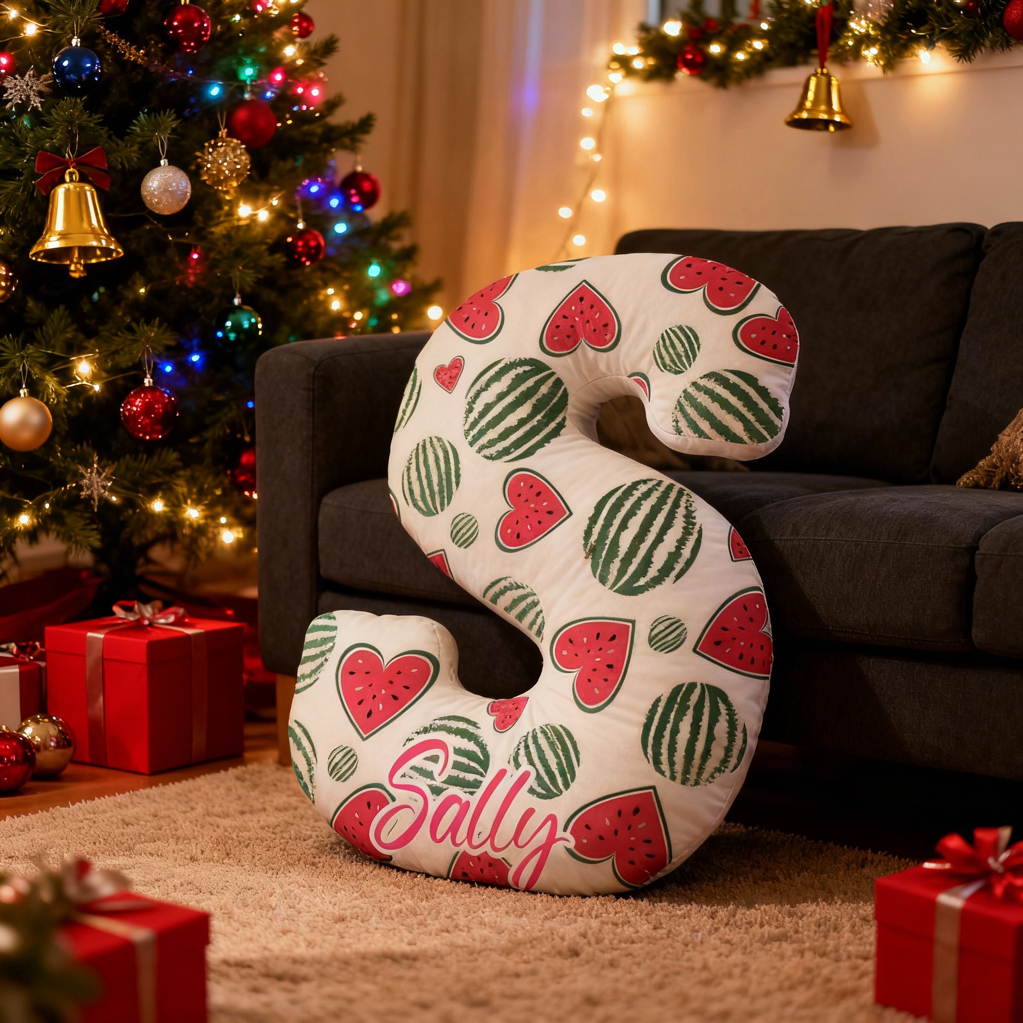 Personalized Heart-Shaped Watermelon Pattern Letter Pillow Christmas Gift for Children