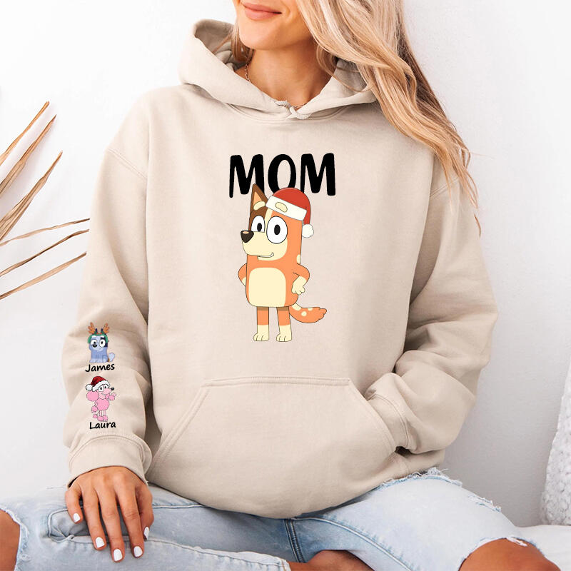 Personalized Hoodie Custom Dog Mama Cartoon Pattern Christmas Design Perfect Gift for Mom