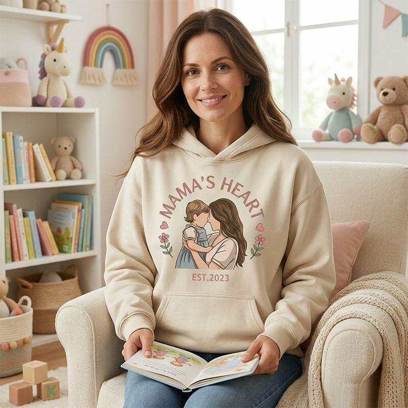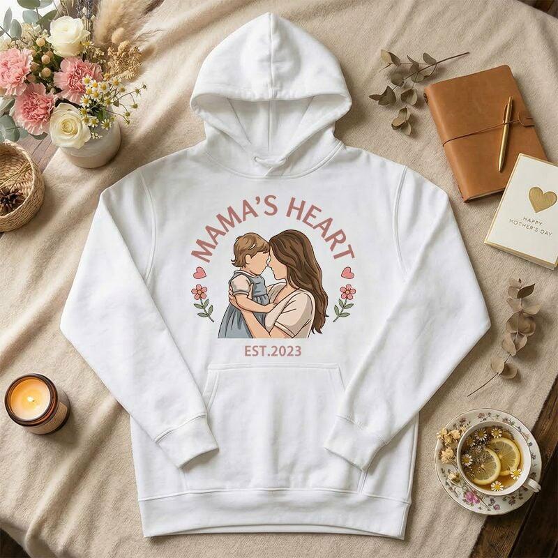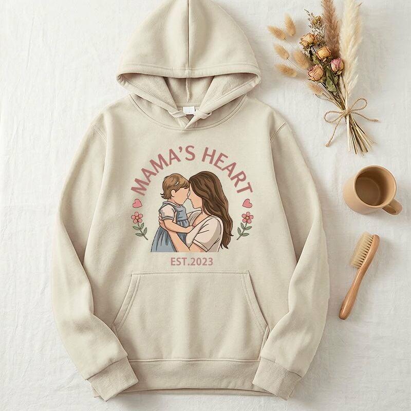 Personalized Hoodie Custom Photo Mama's Heart Flower Design Adorable Gift for Mother's Day