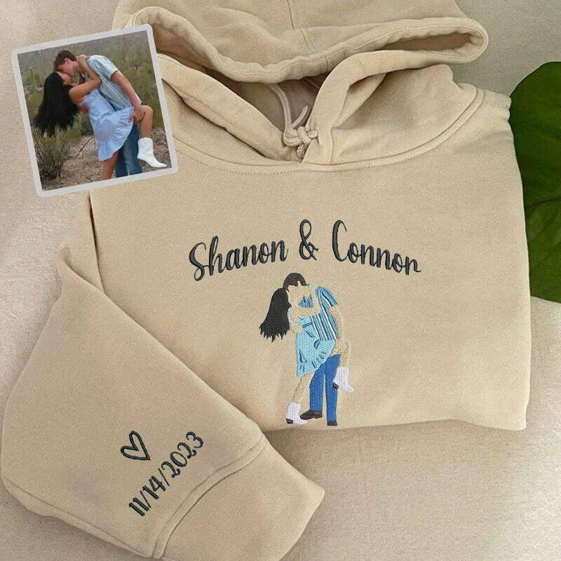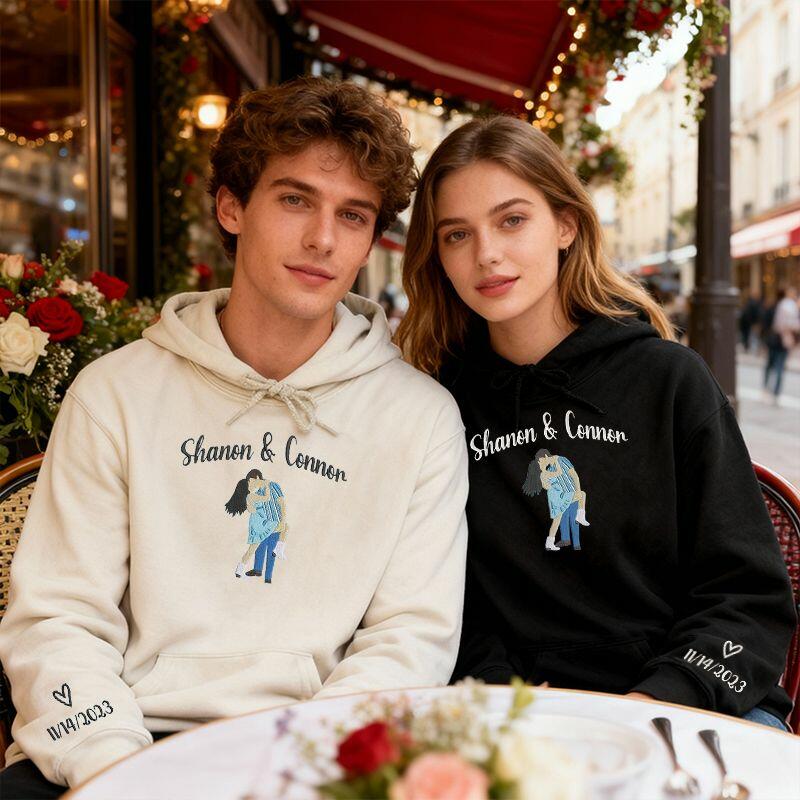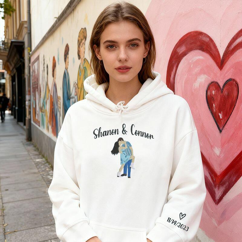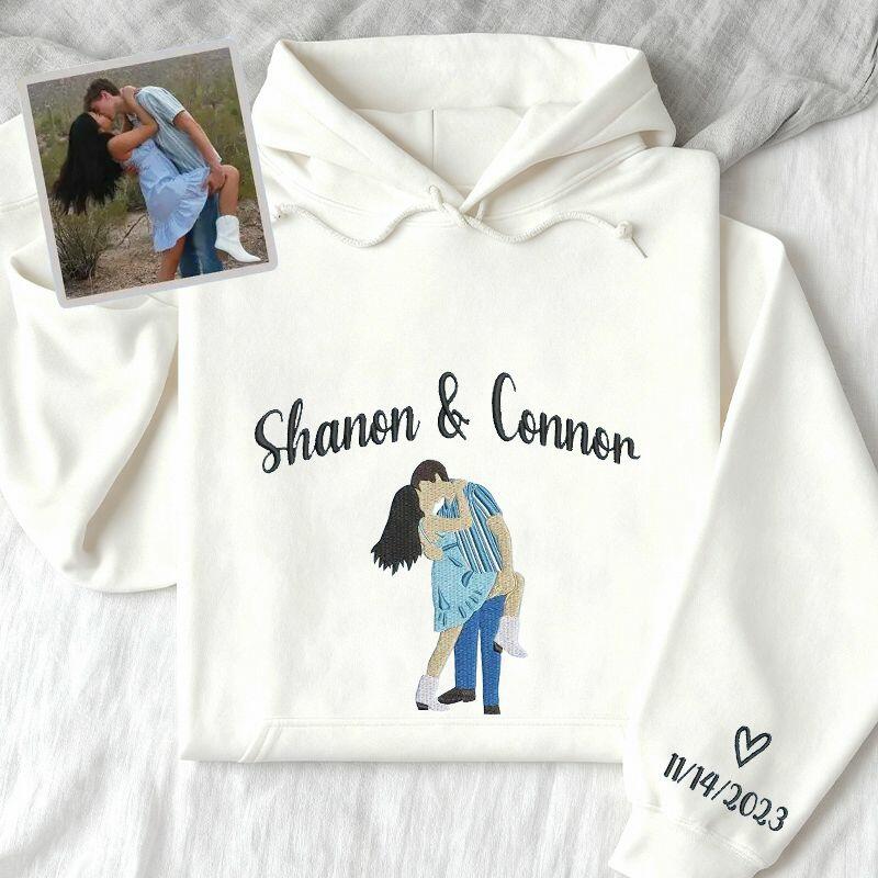 Personalized Hoodie Embroidered Custom Names and Photo Design Unique Valentine's Day Gift for Couples