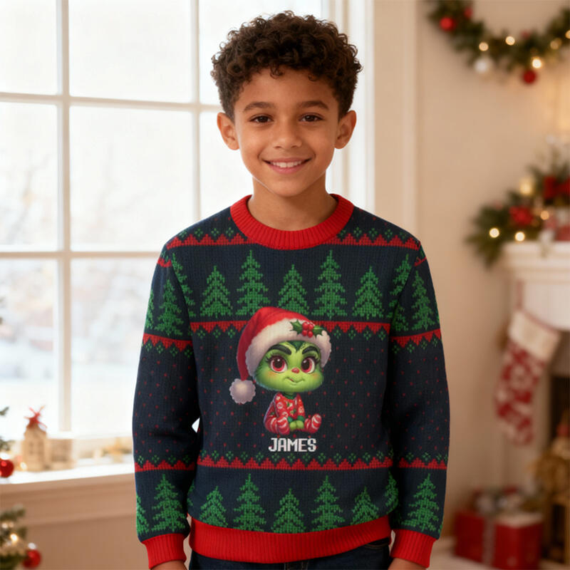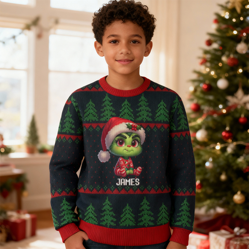 Personalized Kids Ugly Sweater Unisex Baby Cartoon Design Attractive Christmas Gift for Children
