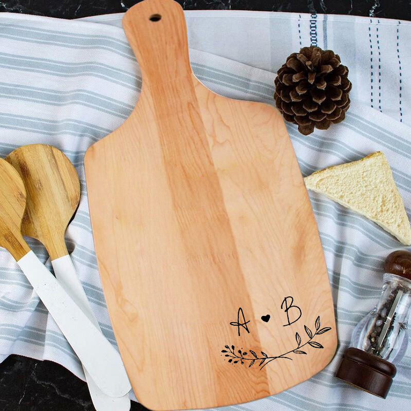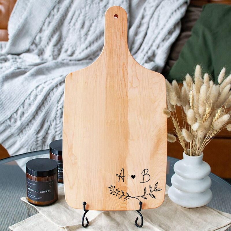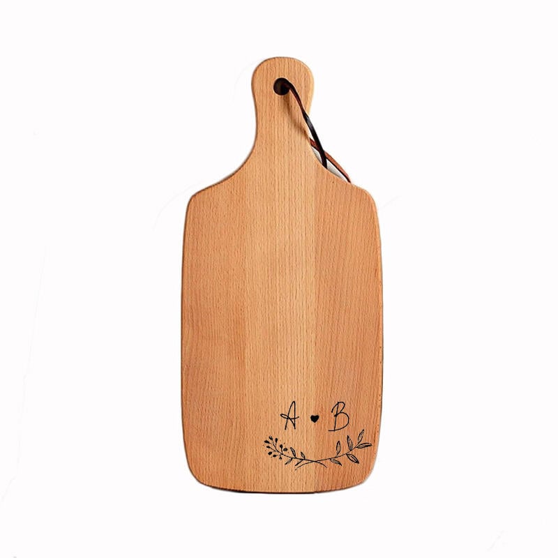 Personalized Letter Charcuterie Board with Leaves And Cute Heart Pattern Simple Present for Someone
