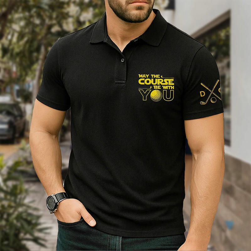 Personalized Letter Embroidered Polo Shirt with Golf Ball Pattern Simple Gift for Friend