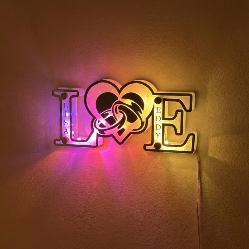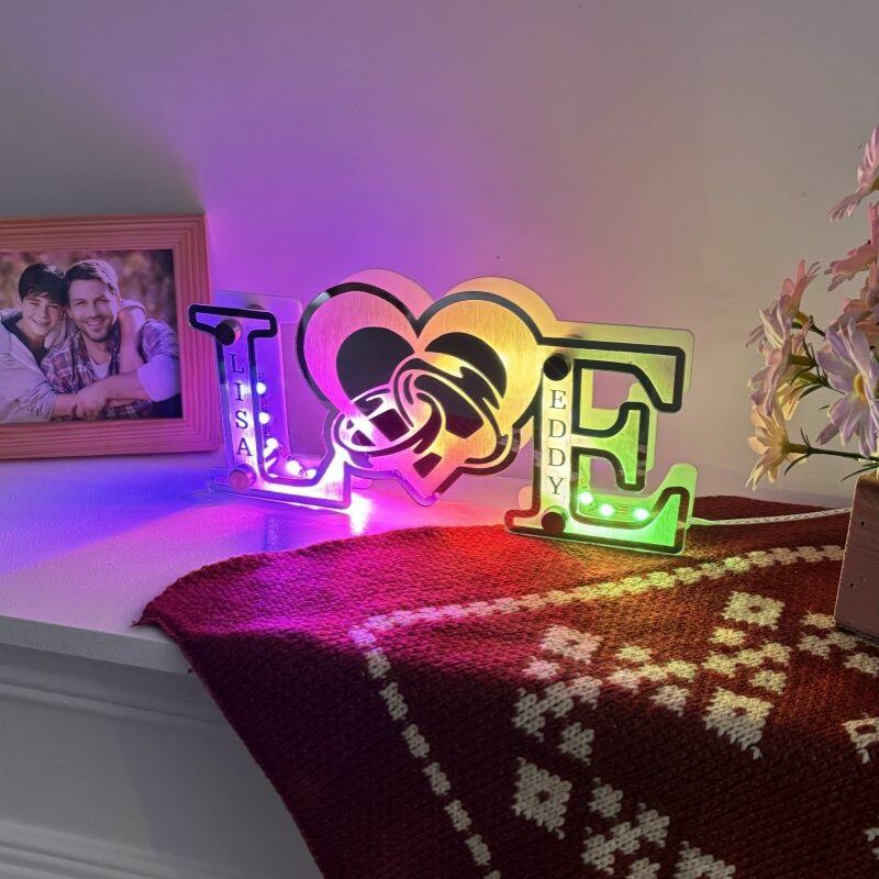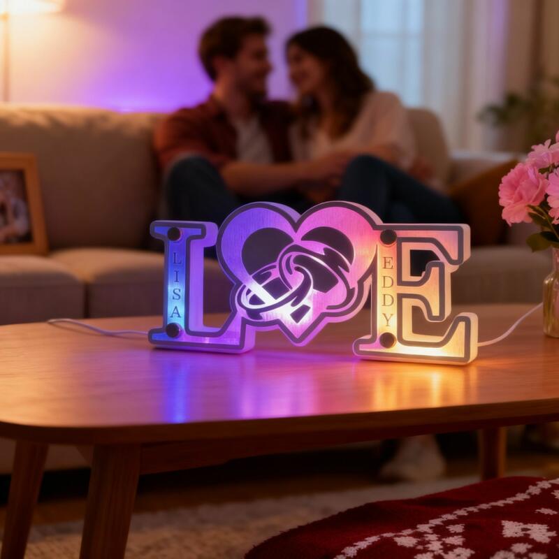 Personalized Letter Mirror Light Strip Heart Ring Sweet Gift for Valentine's Day