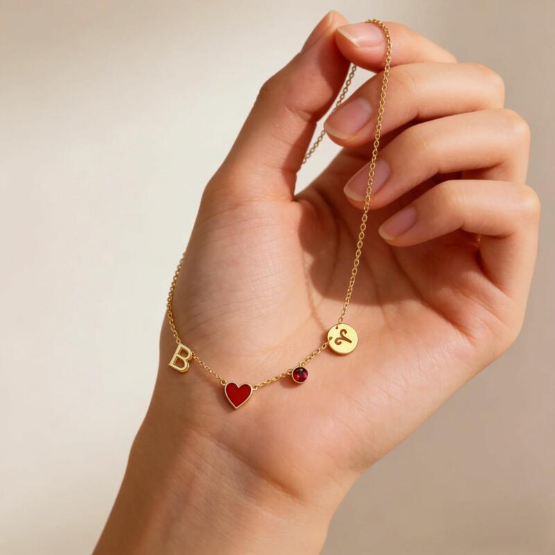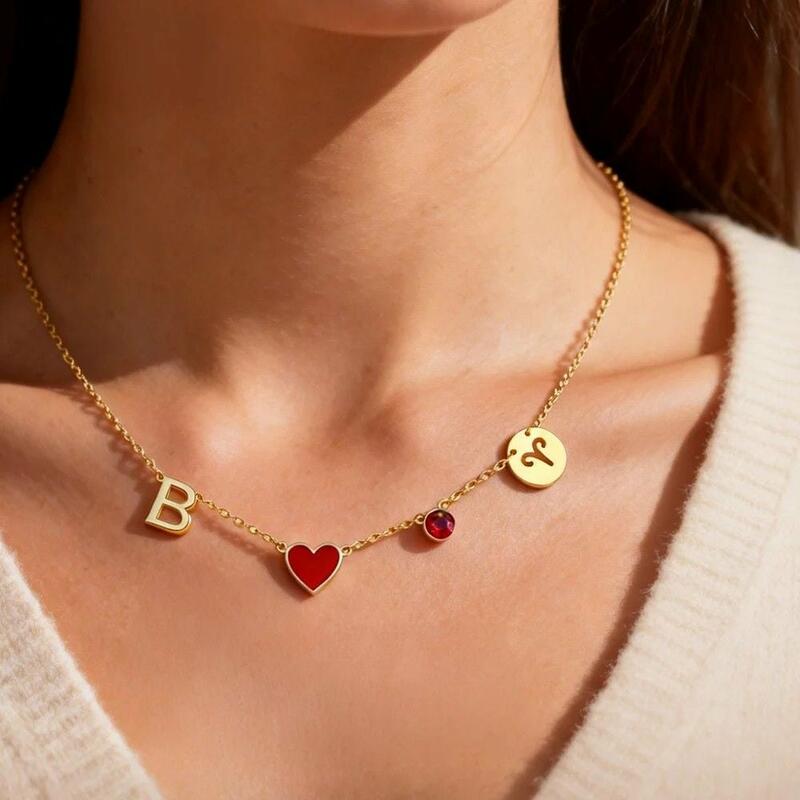 Personalized Letter Necklace with Heart and Birthstone Special Birthday Gift