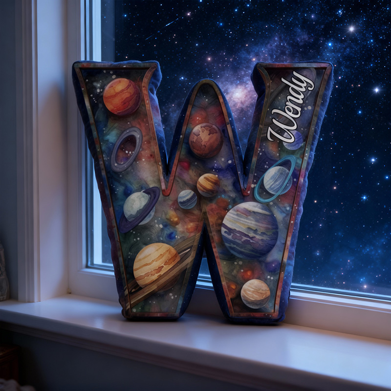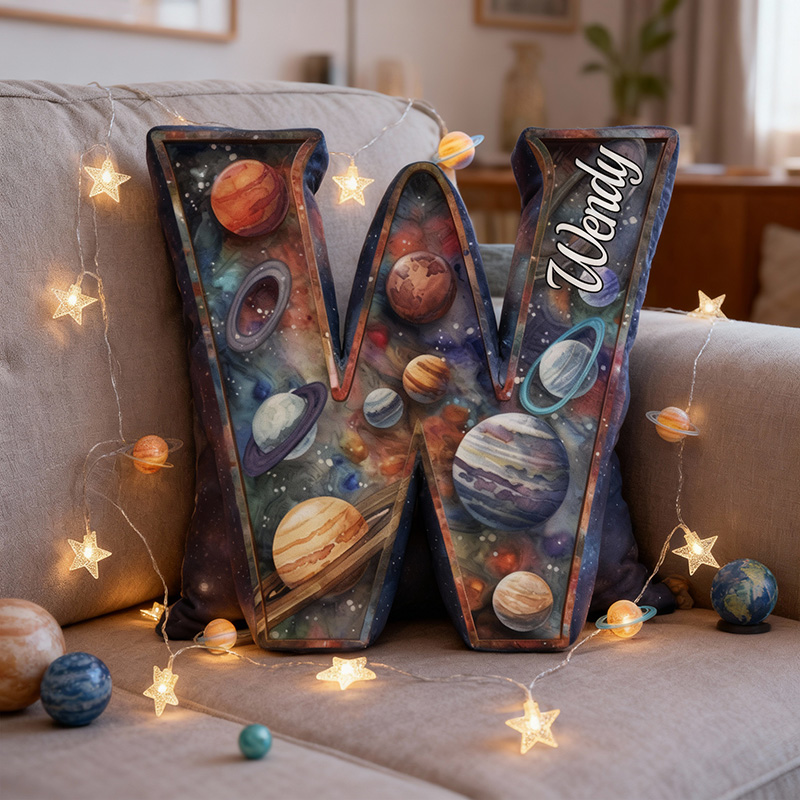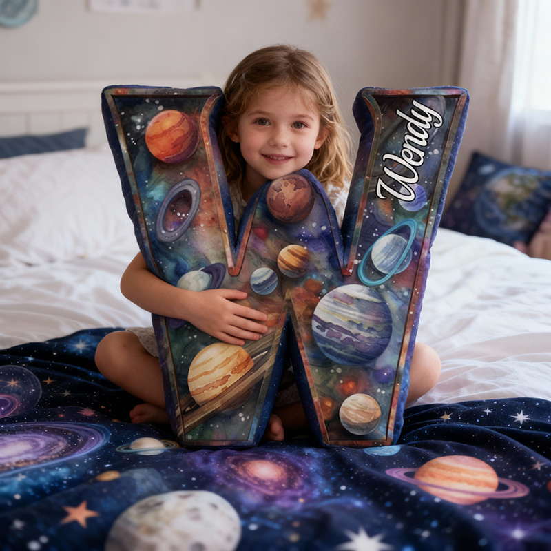 Personalized Letter Pillow with Universe and Planet Pattern Dreamy Gift for Children