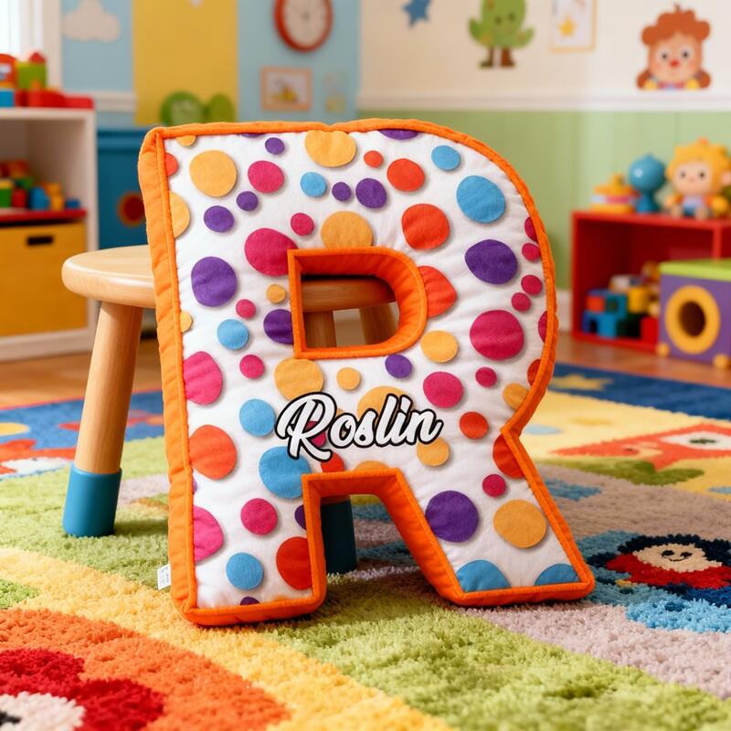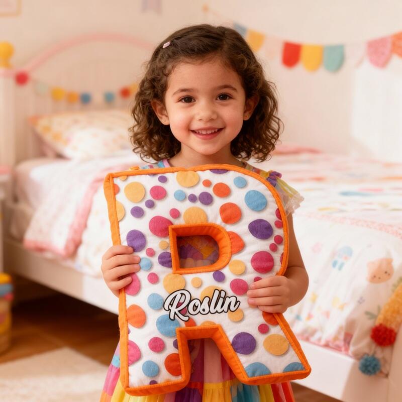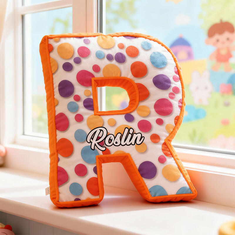 Personalized Letter-Shaped Pillow Colorful Polka Dots Vibrant Design Perfect Gift for Children