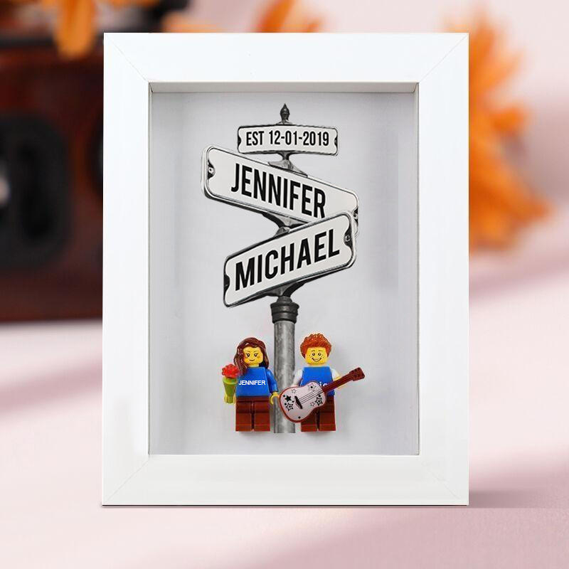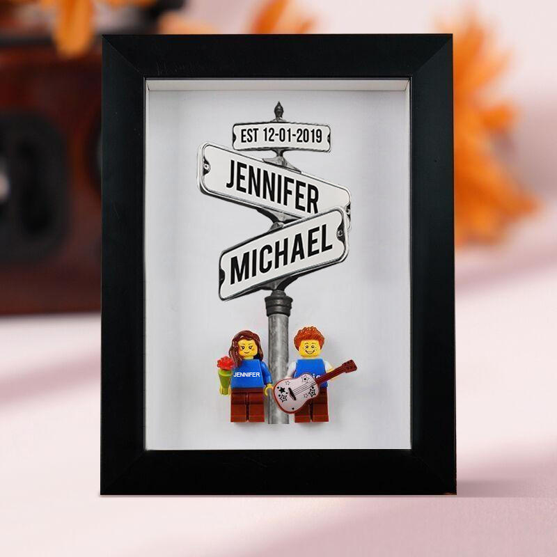 Personalized Minifigure Photo Frame With Name Street Sign Valentine's Day Gift