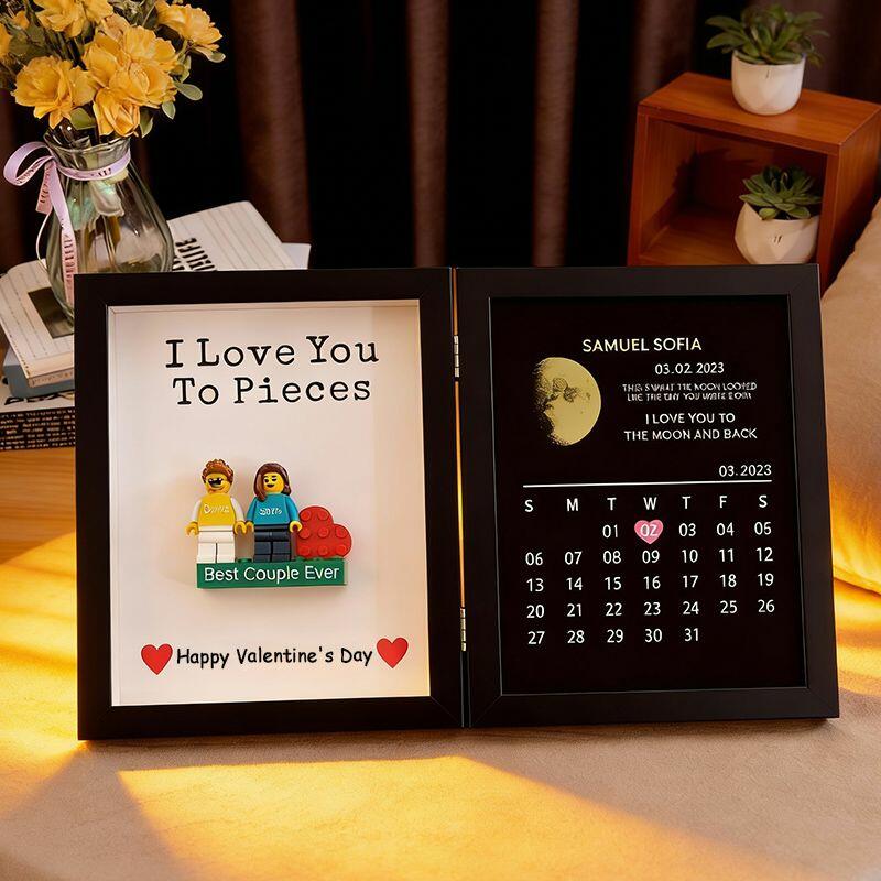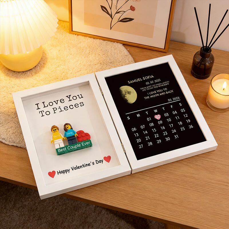 Personalized Minifigures with Double Frames Customizable Dates and Moon Phases Perfect as an Anniversary Gift