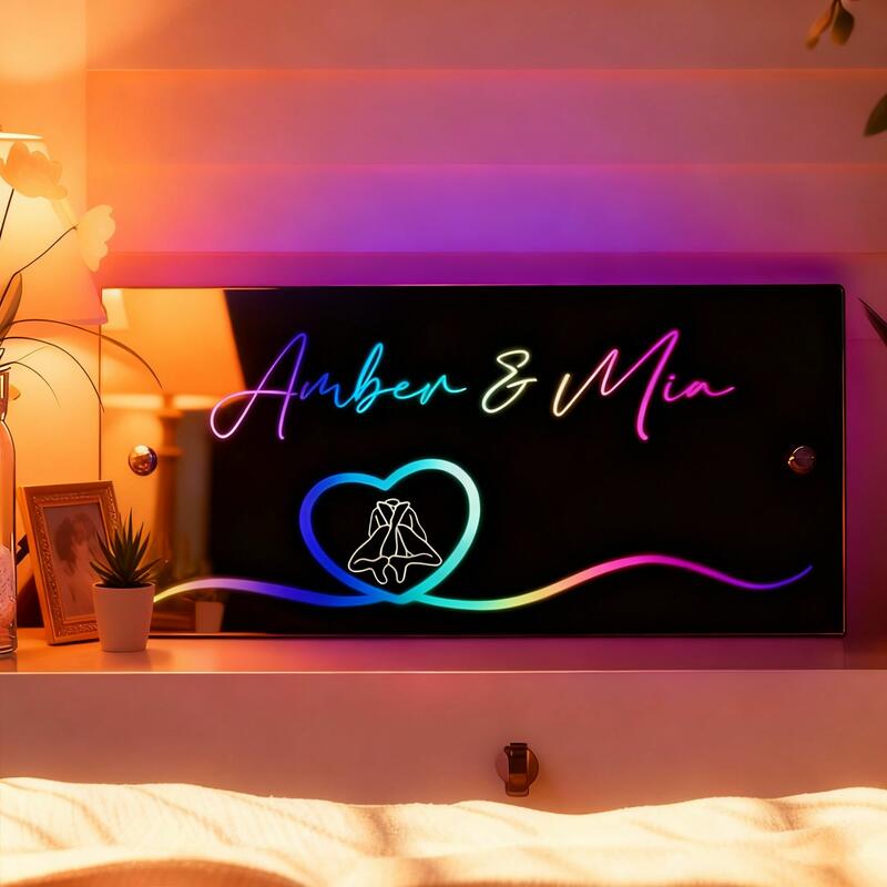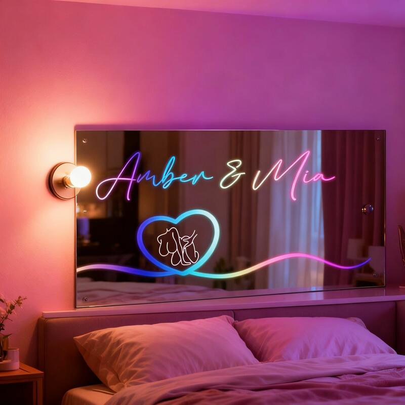 Personalized Mirror Lamps with Customizable Couple Names Fun Gifts for Valentine's Day