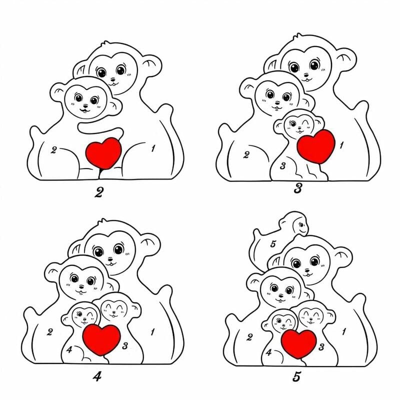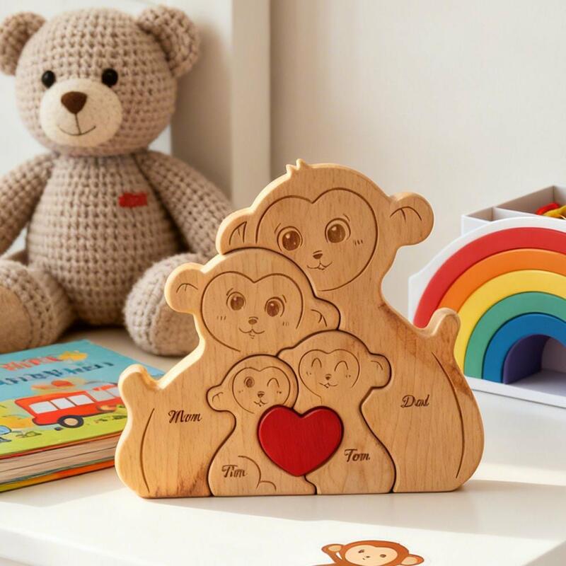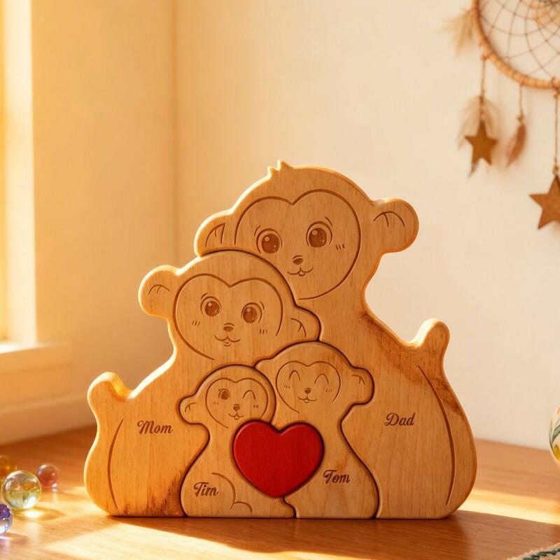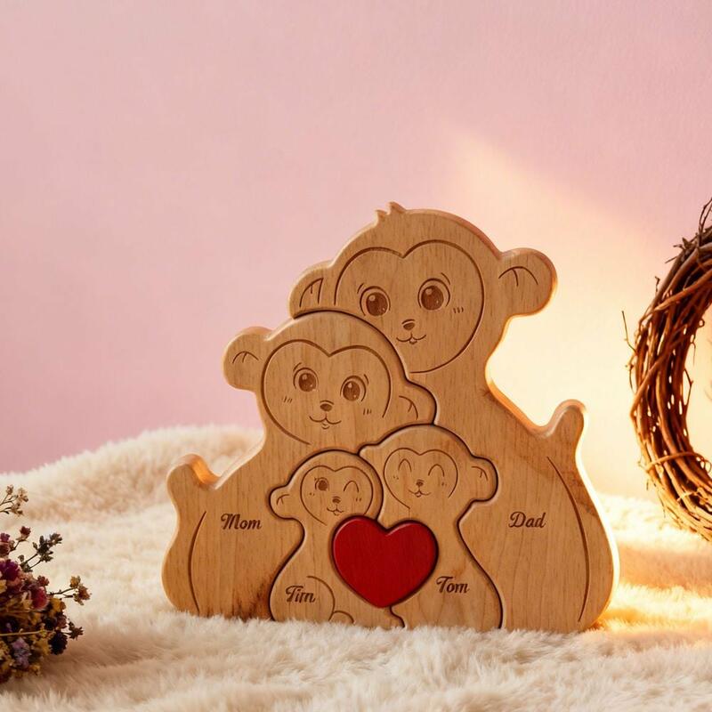 Personalized Monkey Family Wooden Puzzle Cute Gift for Mother's Day