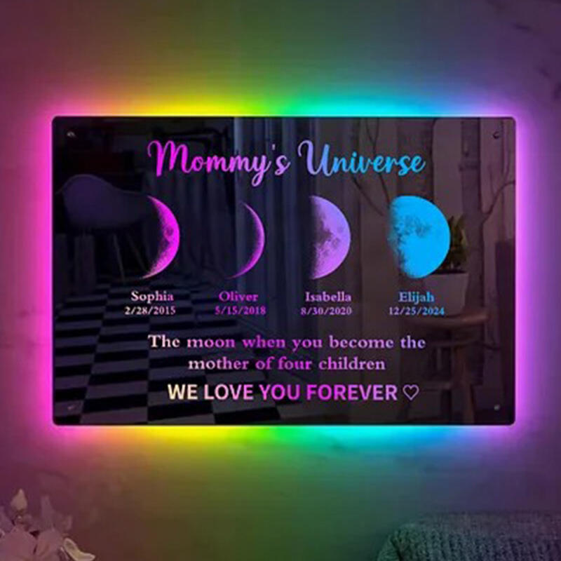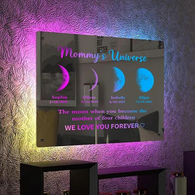 Personalized Moon Phase Mirror Lamp Customized Child Birth Moon Mother's Day Gift