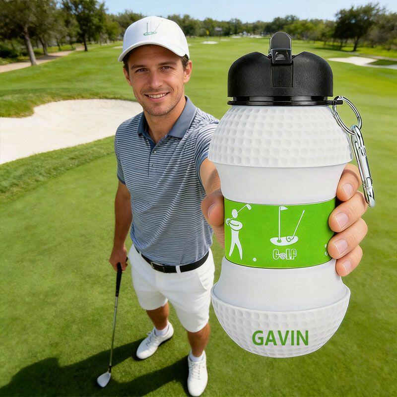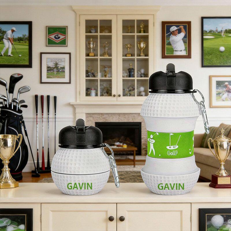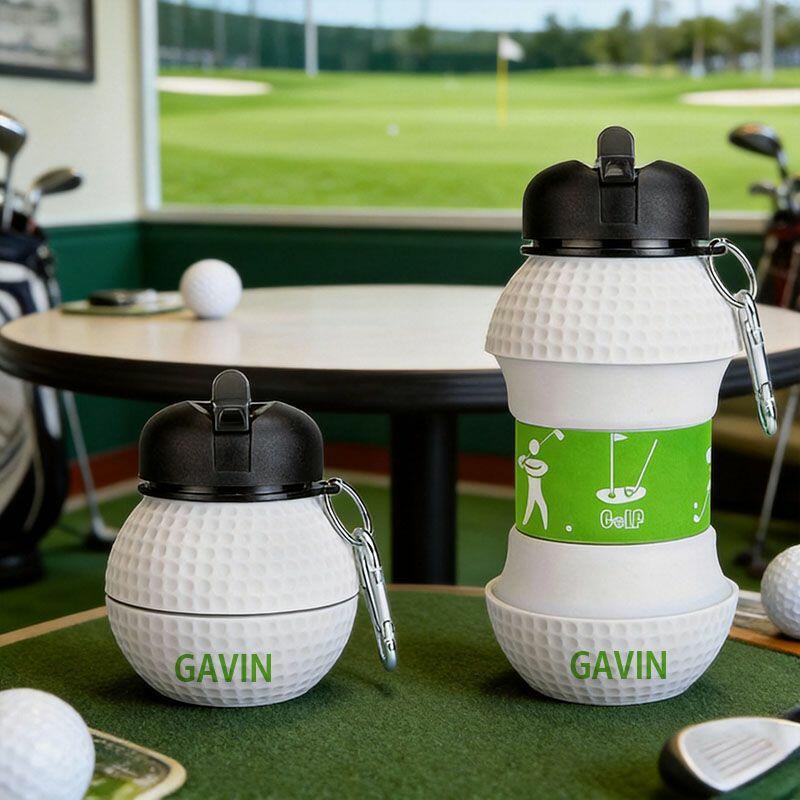 Personalized Name Foldable Extendable Water Bottle with Golf Ball Design Interesting Gift for Sports Lovers