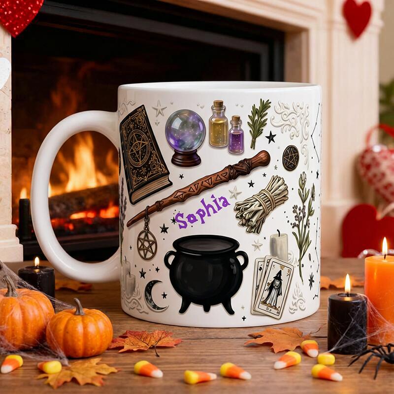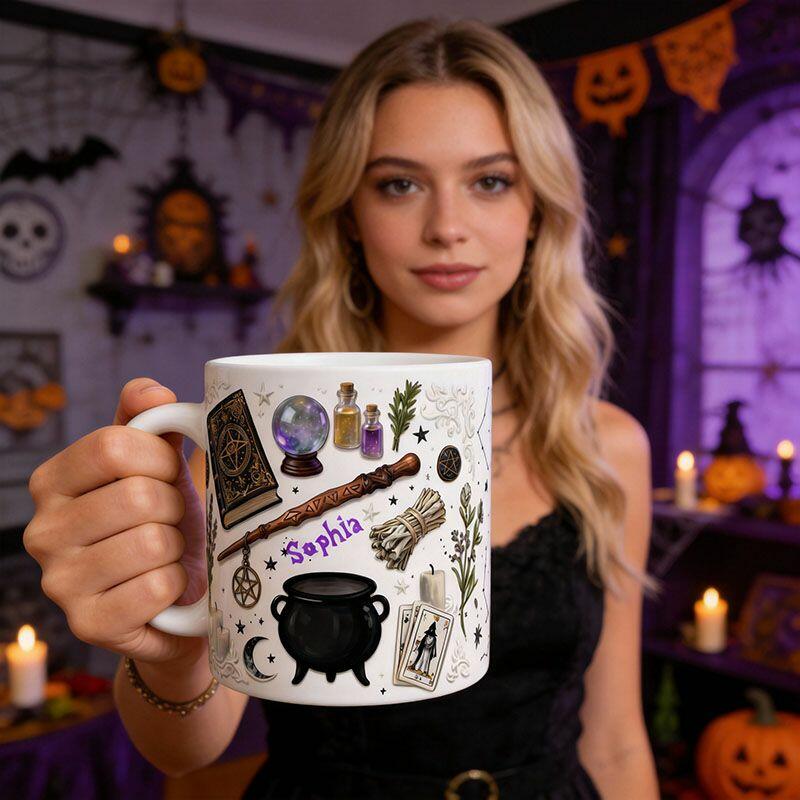 Personalized Name Mug with Magic Book Design Exquisite Halloween Gift
