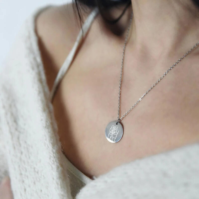 Personalized Photo Necklace with Custom Picture Contour Line Design Gift for Loved One