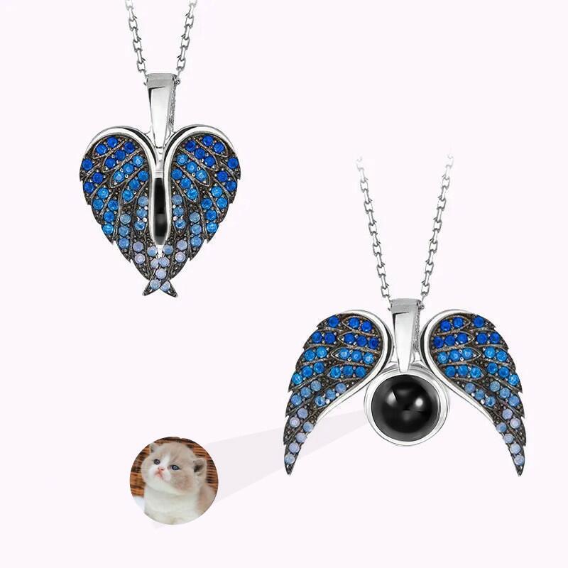 Personalized Photo Projection Necklace with Blue Wings Creative Gift for Her
