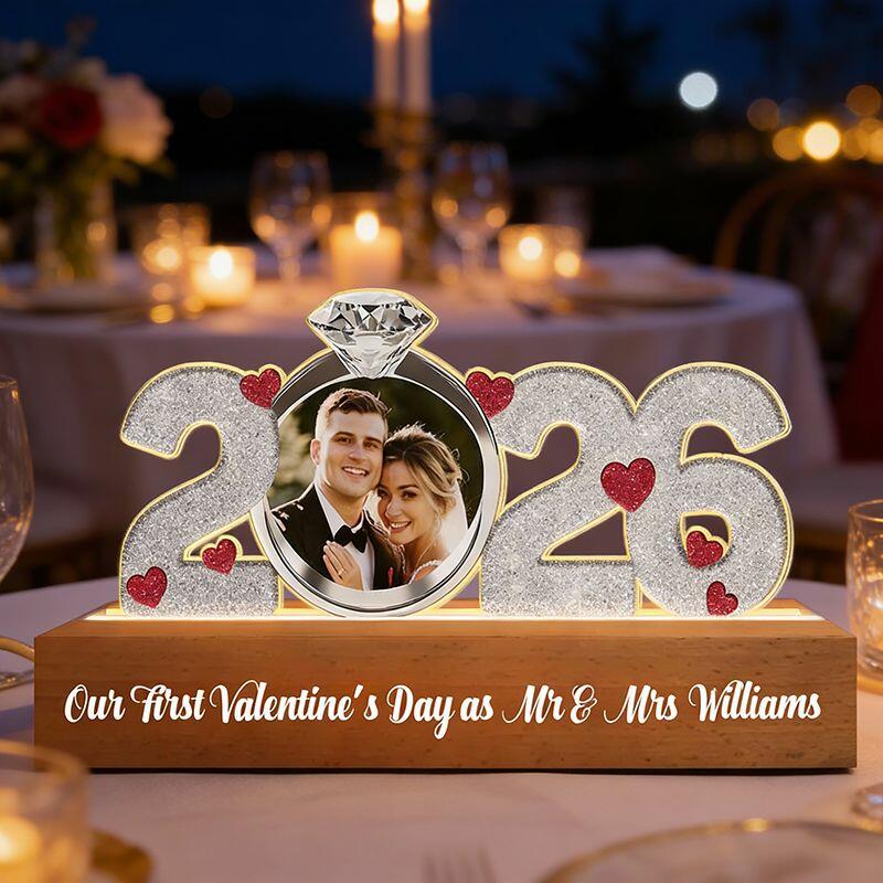 Personalized Picture Night Light with Ring Pattern Beautiful Present for Wife