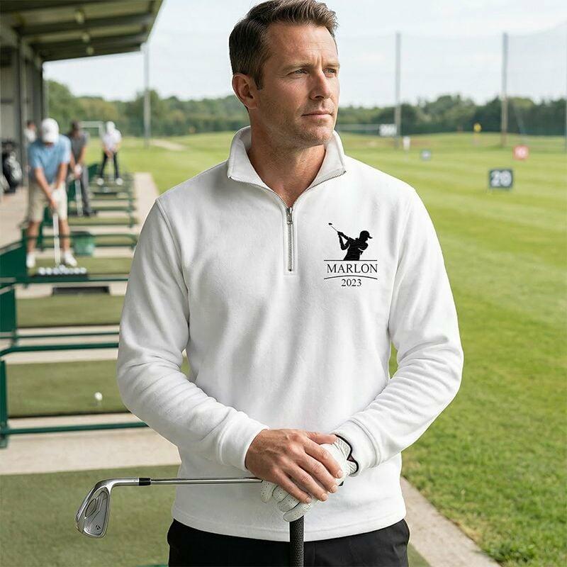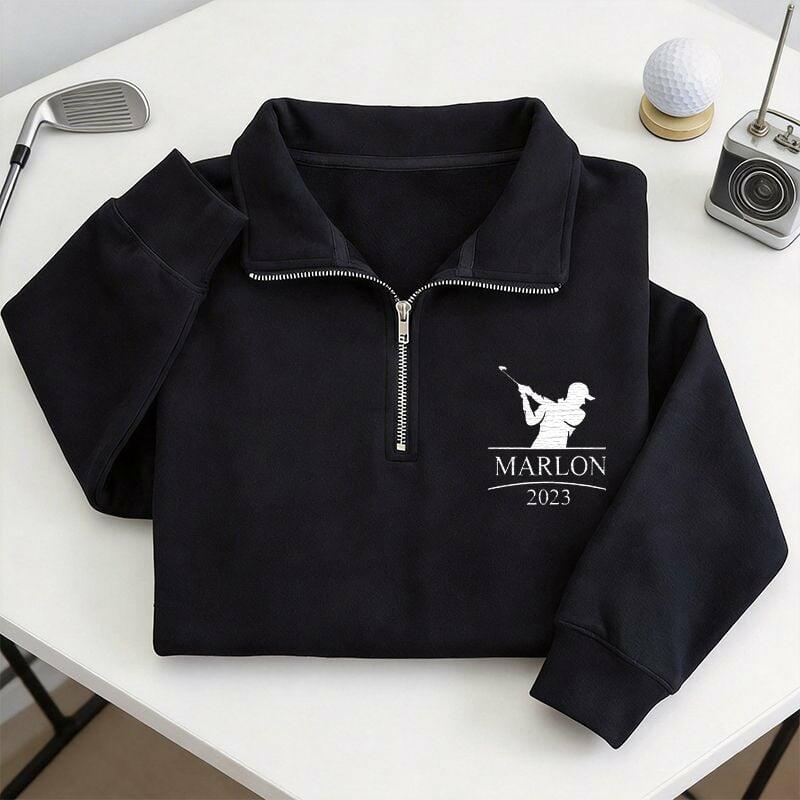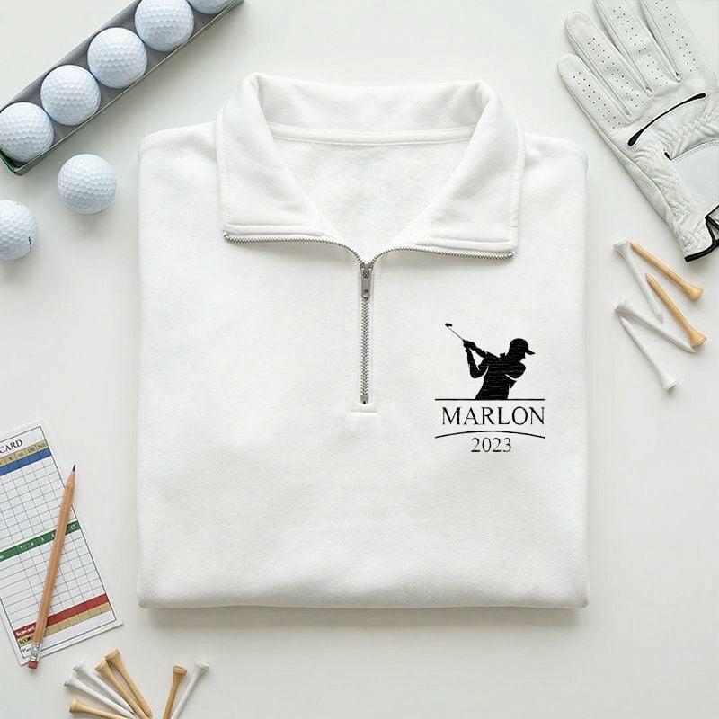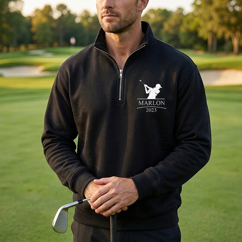 Personalized Quarter Zip Sweatshirt Embroidered Custom Name and Year Golf Swing Design Gift for Golf Lovers