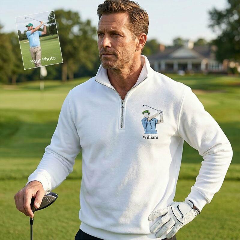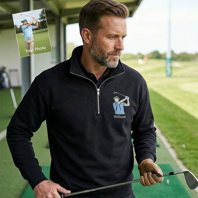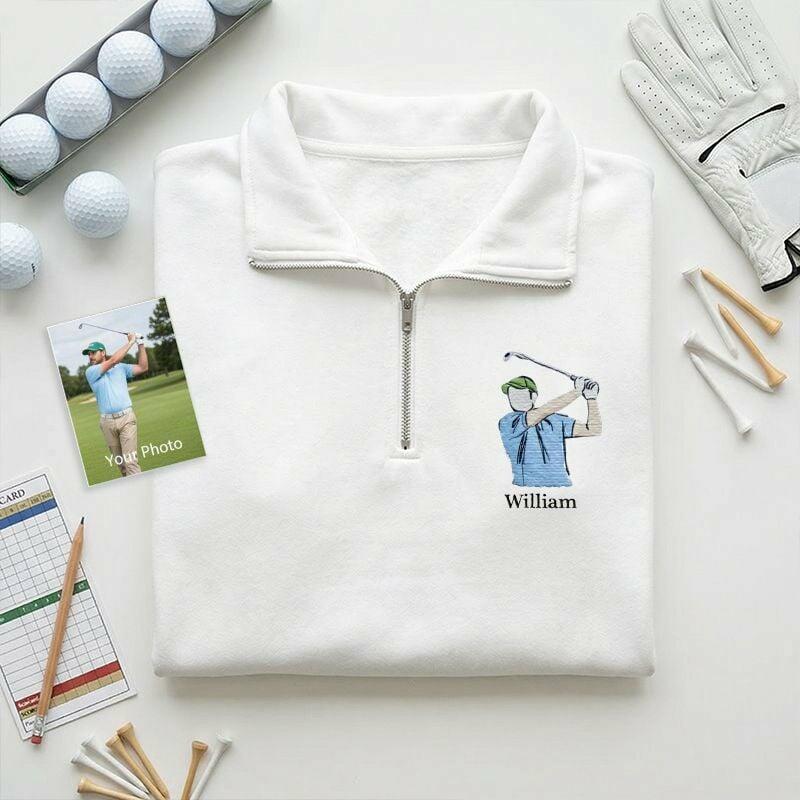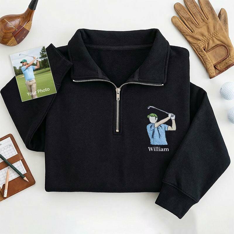 Personalized Quarter Zip Sweatshirt Embroidered Custom Photo and Name Design Perfect Gift for Golf Lover Friends