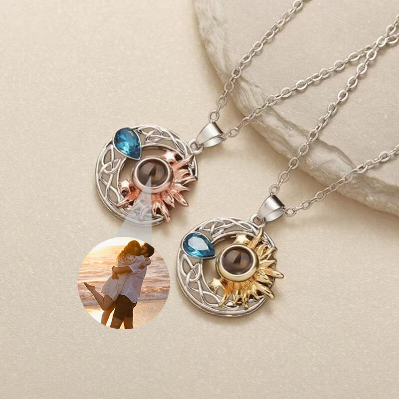 Personalized Sun Moon Projection Picture Necklace Fun Gift for Family